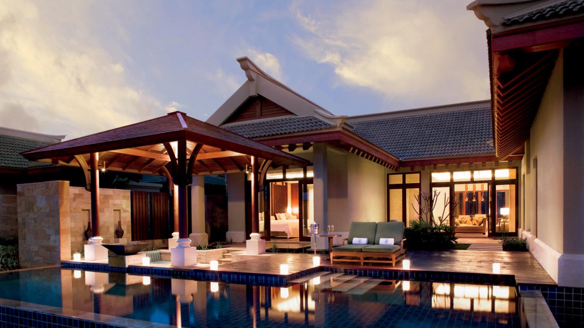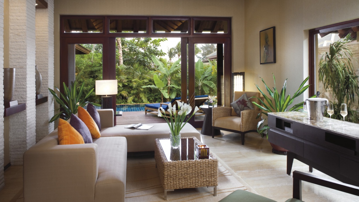 Двокімнатна Ocean Front Villa: - 252 кв.м1 часй Він складається з вітальні з зоною харчування, кухні, двох спалень (з ліжком розміру king-size і двома ліжками королеви-szie), двох санвузлів, додаткового туалету, тераси з власним басейном і чатом, і йде в бухту. Максимальне розміщення чотири дорослих.