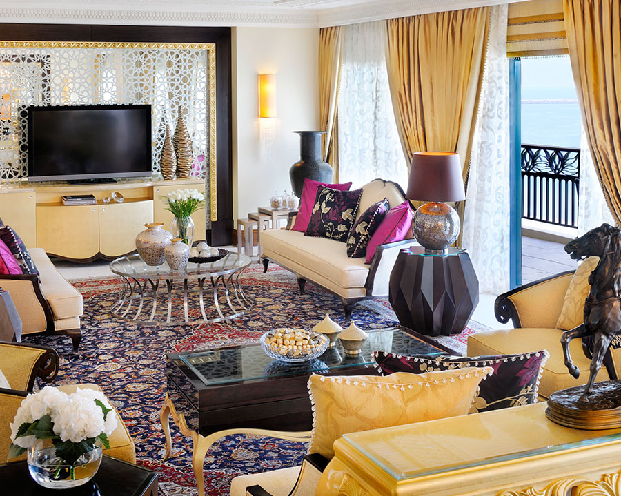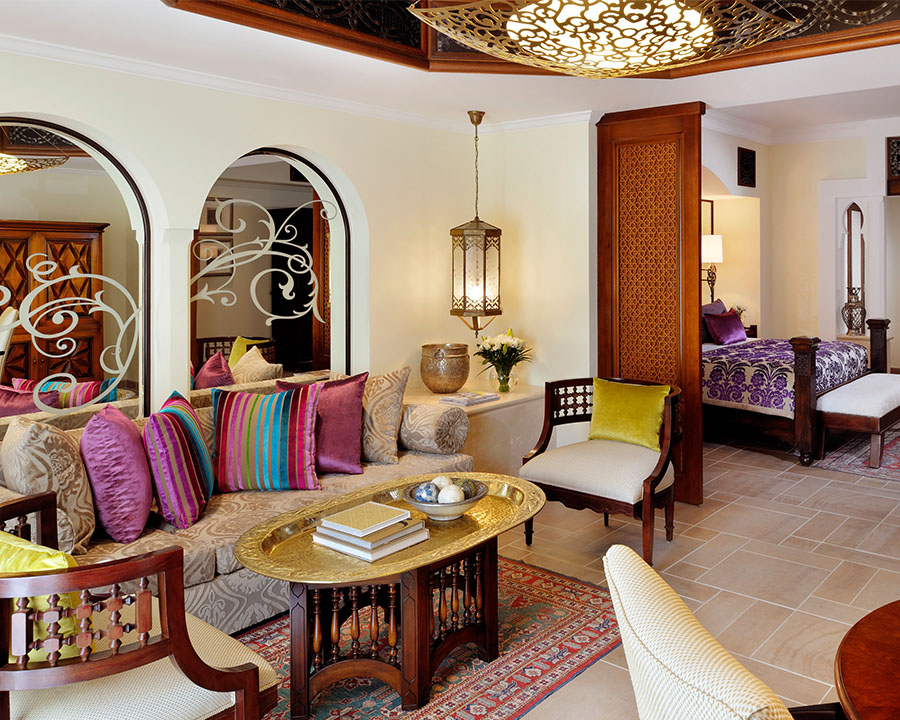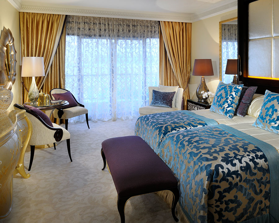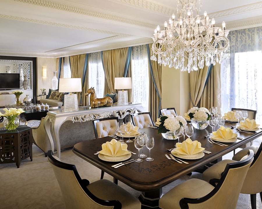 125 кв. м. В інтер'єрі представницького люксу, розташованого в Arabian Court використані кольори, що нагадують про близькість пустелі, східний стиль читається в візерунках шикарних тканин, що додає атмосфері люксу розкоші та елегантності. У номері знаходиться спальня з ліжком розміру «king-sizе», вітальня, їдальня з великим обіднім столом, ванна кімната прикрашена деревом, мозаїкою та мармуром, вона обладнана ванною, душовою кабіною, подвійною раковиною, окремий туалет з біде, гостьовий туалет, простора тераса. Відведено робочу зону зі зручним столом, на якому є факс, доступ в інтернет та принтер. Дані номери розташовані поруч із суміжним двомісним номером та мають спільне фойє. Розміщення: 3 особи.