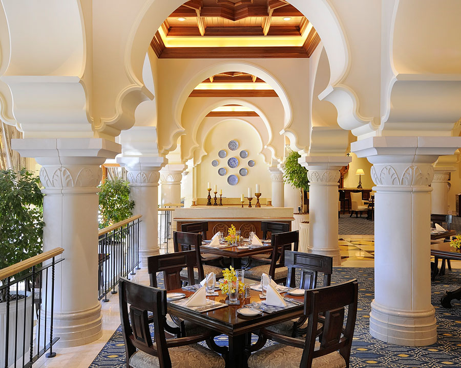Arabian Court надає гостям готелю розкішні номери в аравійському стилі з різьбленими елементами меблів, багатим текстилем та чудовими видами на затоку. Внутрішні дворики з садами, фонтанчиками та зонами відпочинку занурюють туристів у справжню містичну близькосхідну казку.