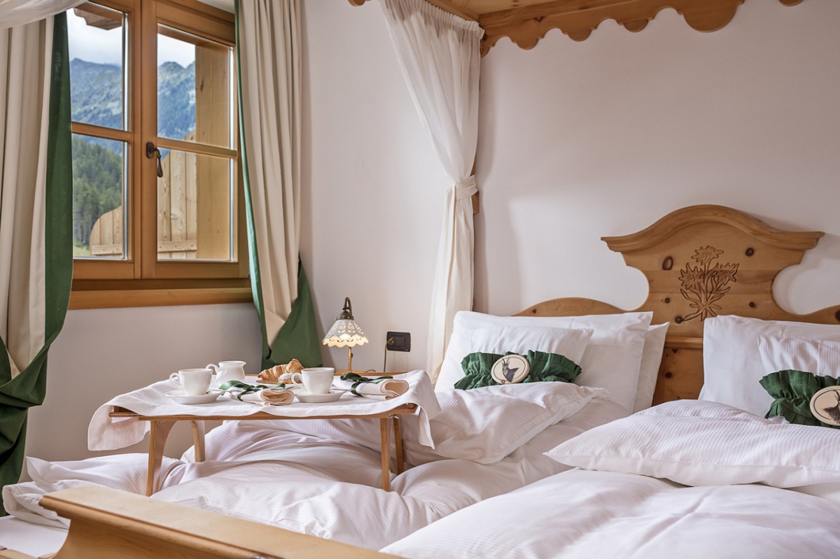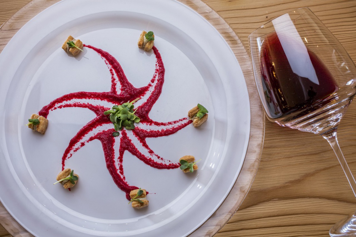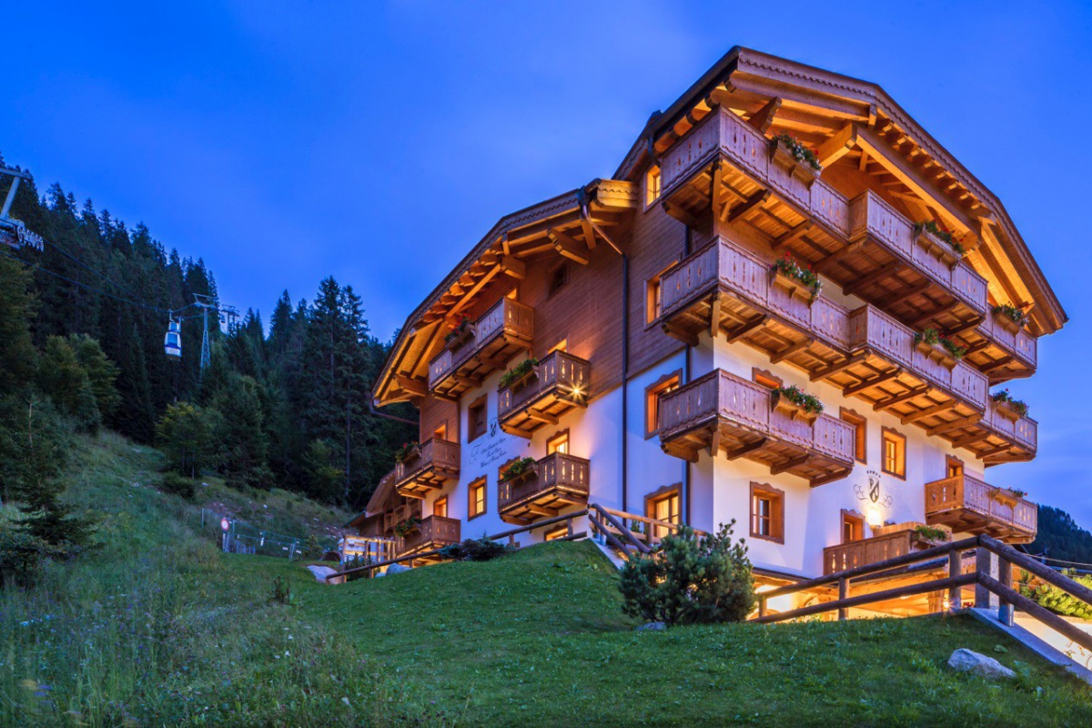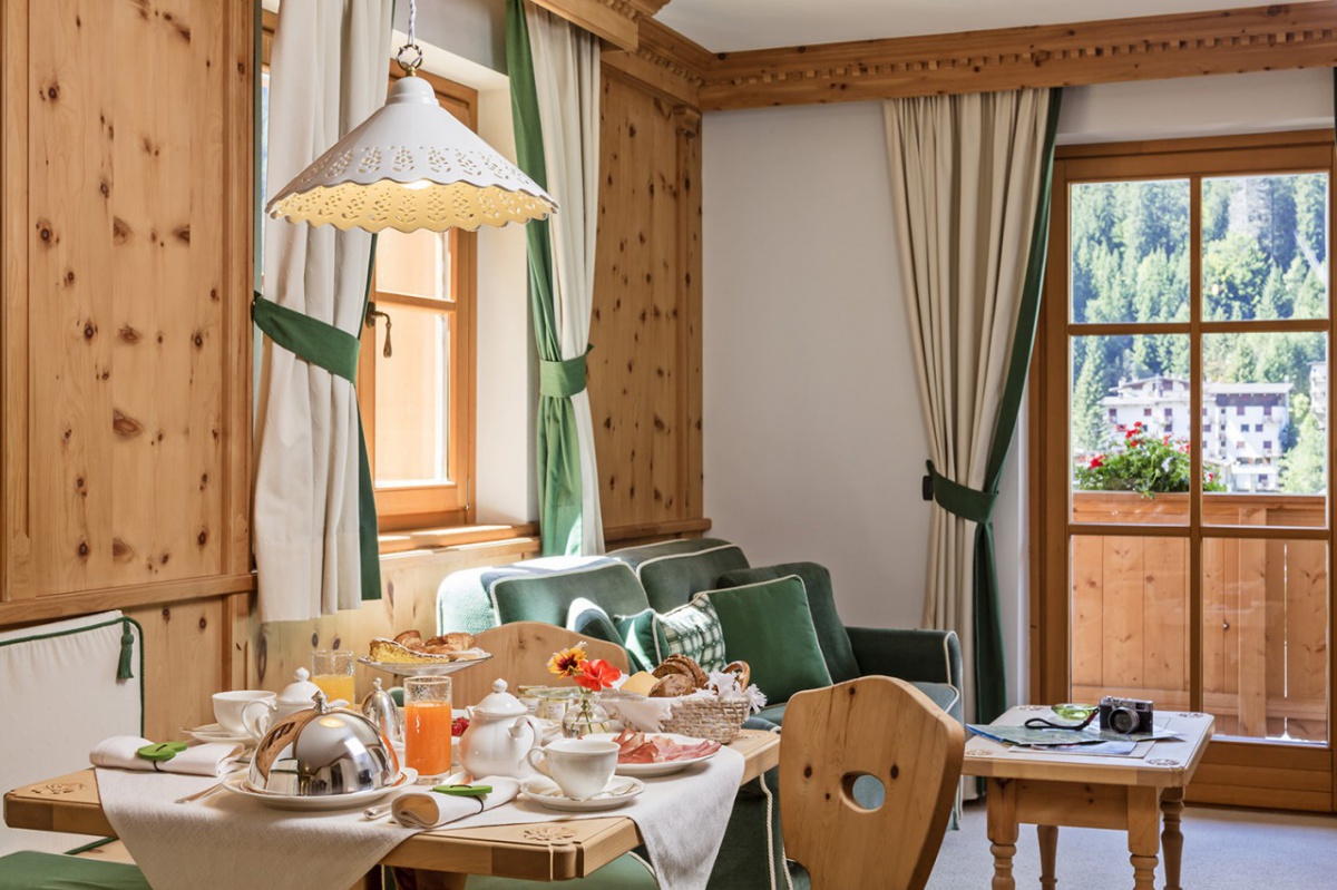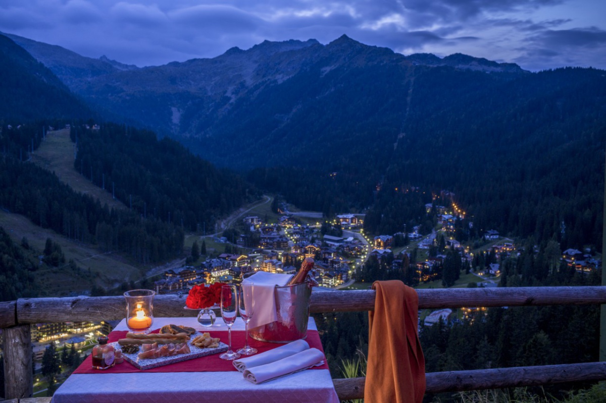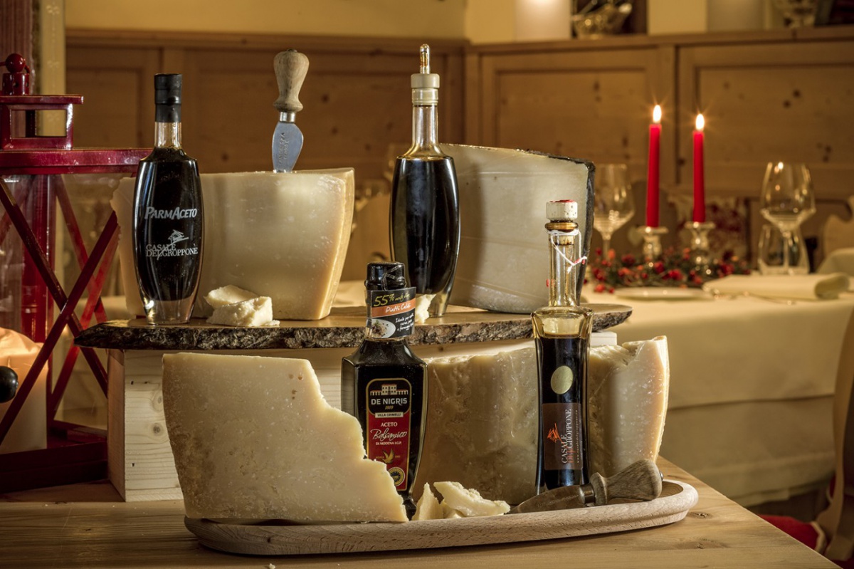 Ексклюзивна кахельна піч, розписана вручну, натуральні матеріали, турбота про освітлення та елегантний штрих у деталях та обстановці надають ресторану Due Pini клас та індивідуальність, типові для гірських закладів. Оточені теплом цієї магічної атмосфери, ви зможете насолоджуватися кухнею, яка дотримується регіональної трентинської традиції, але в той же час переглядається в оригінальному та мудрому ключі, завжди використовуючи добірні місцеві інгредієнти.