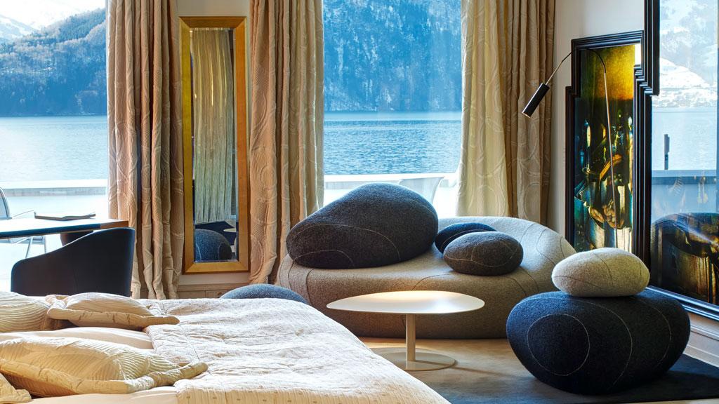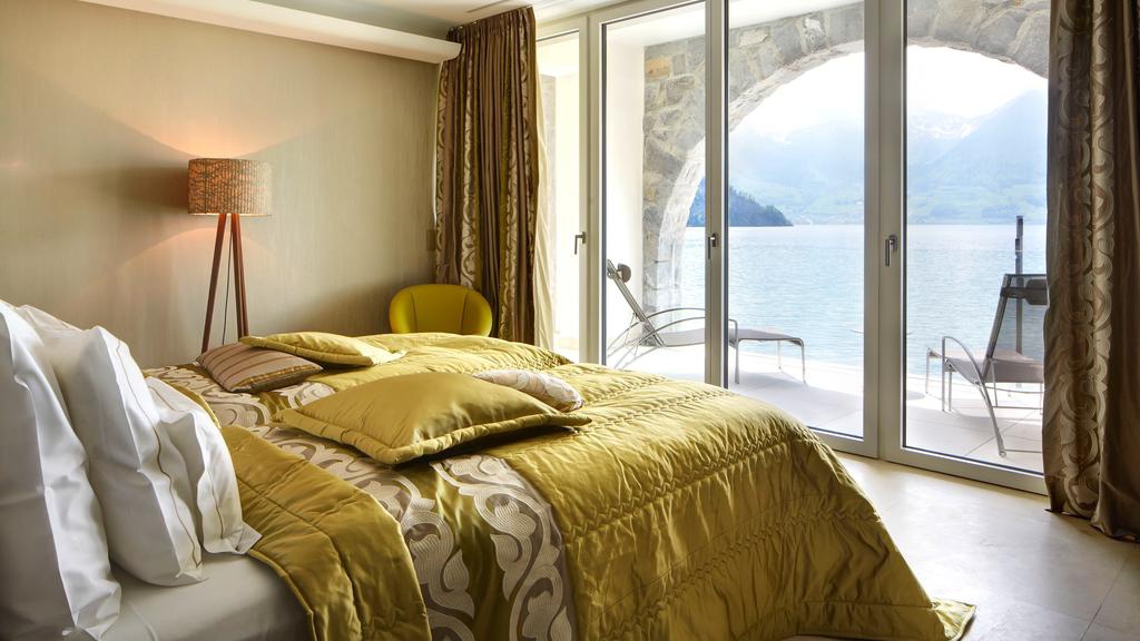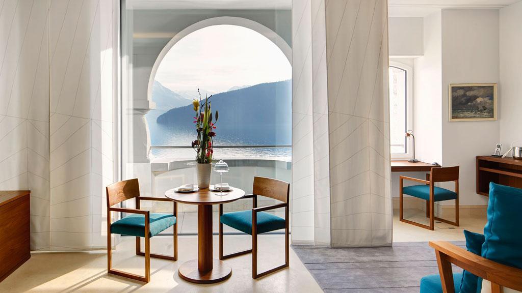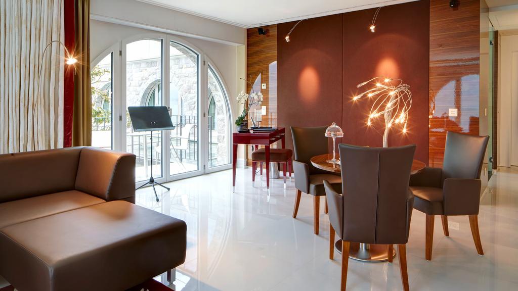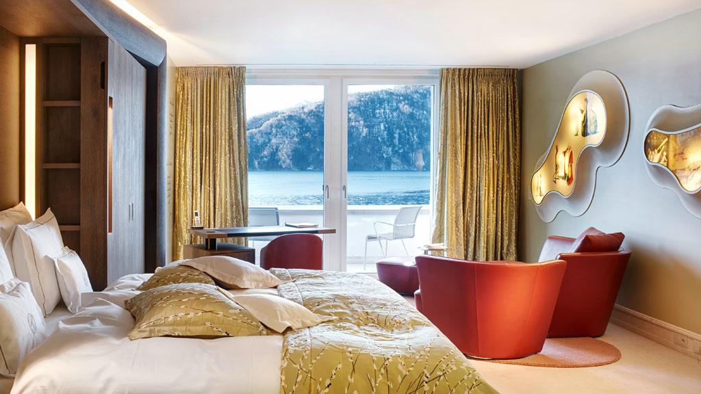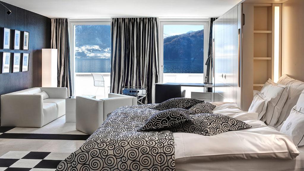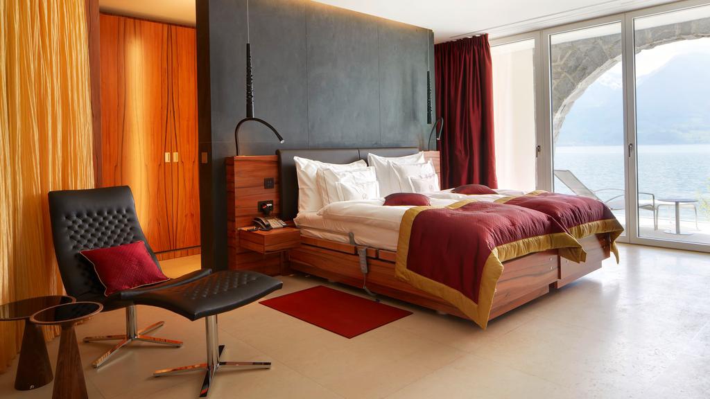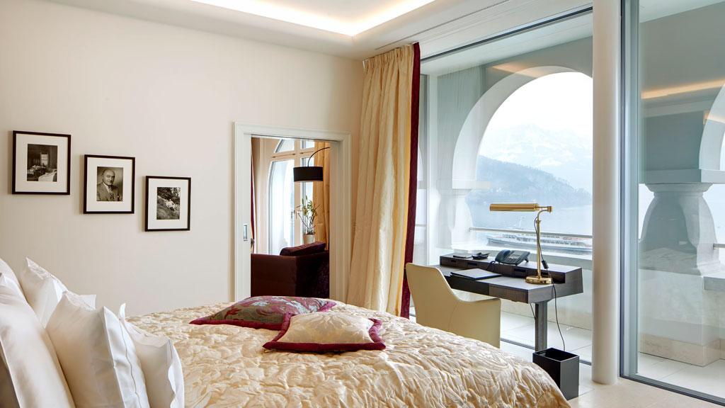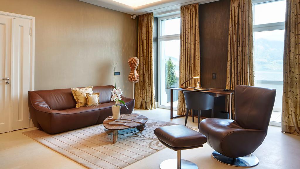 - Полулюкс- 6 розкішних шляпок з неперевершеним видом на озеро Люцерне, що складається з спальні, окремої вітальні, мармурової ванної кімнати, приватного балкона або тераси. Костюми оснащені кондиціонерами і мають сейф і міні-бар.
