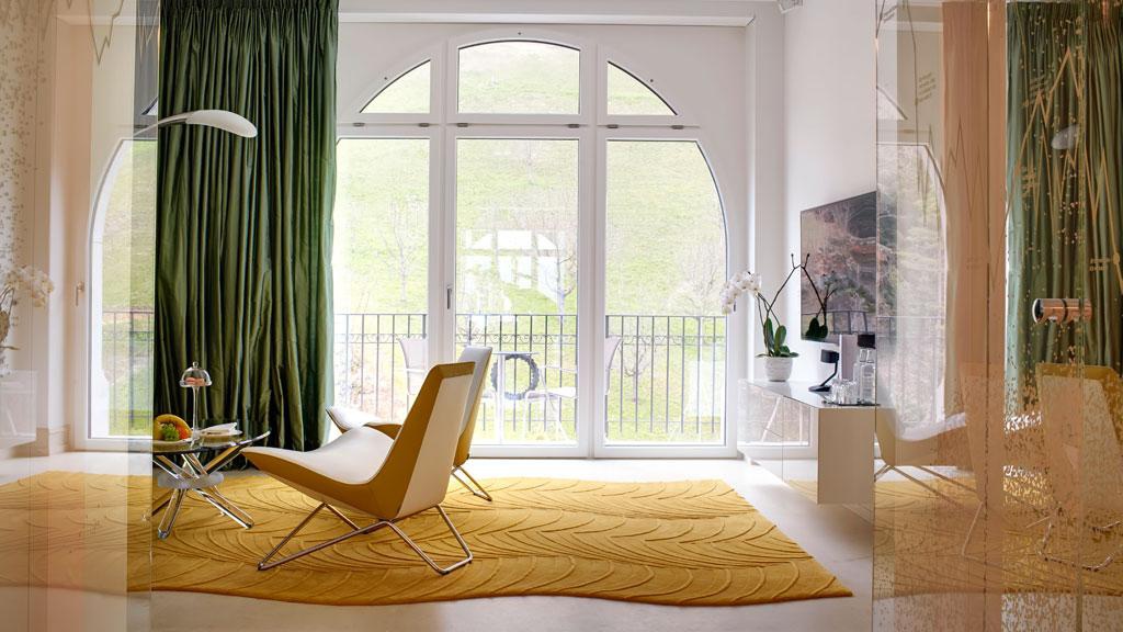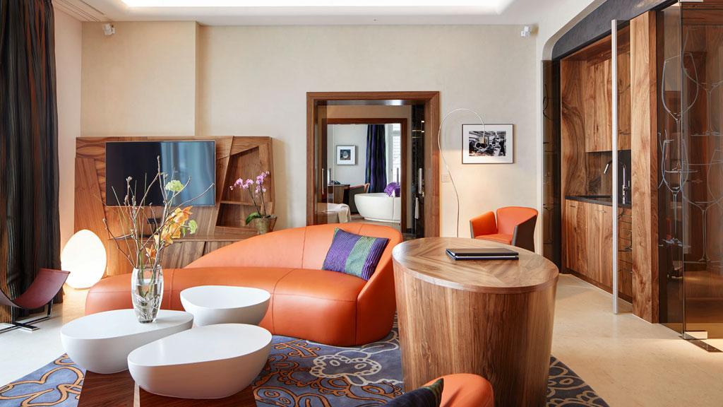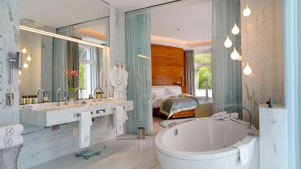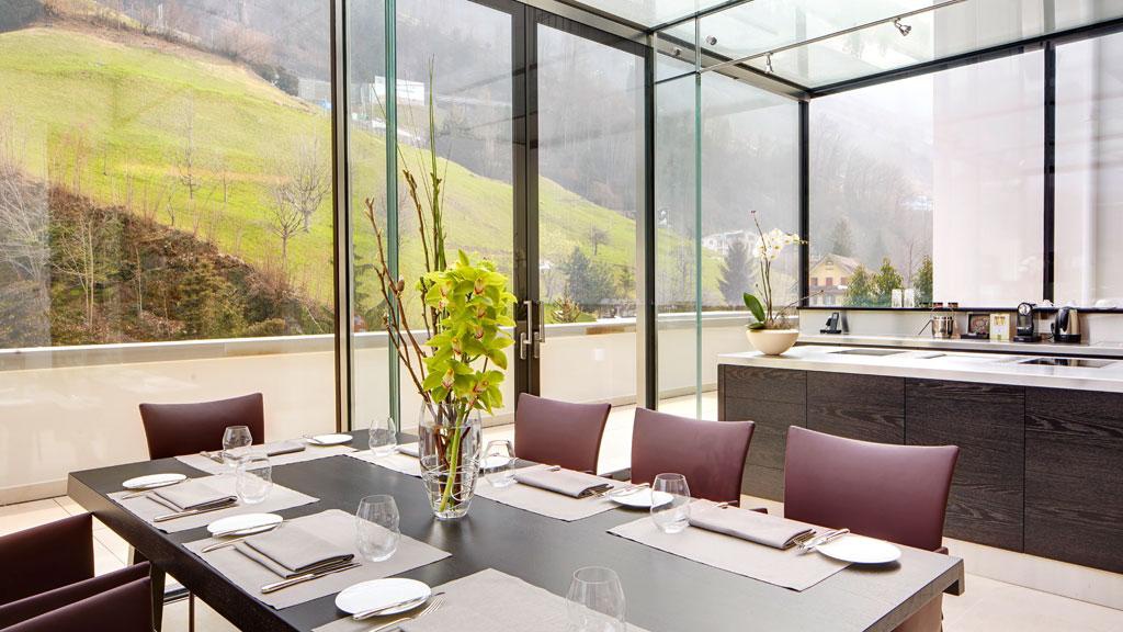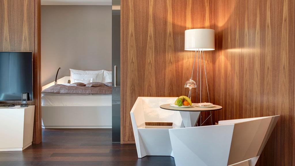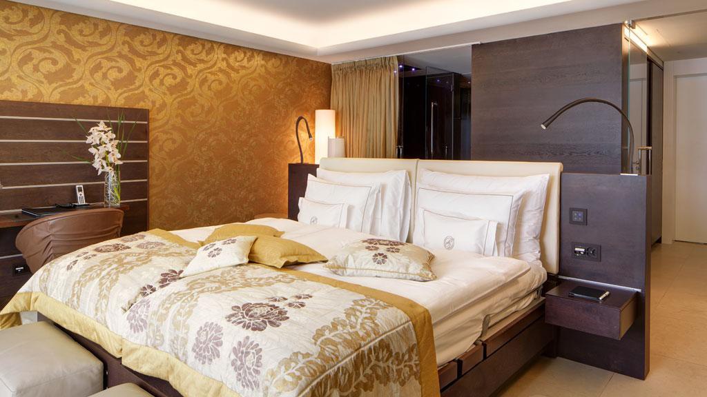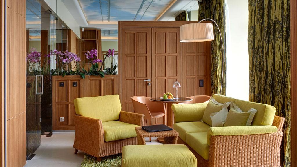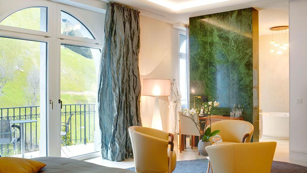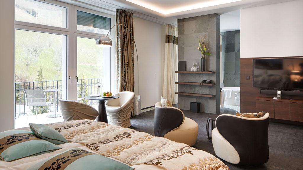 - Полулюкс- 6 розкішних шляпок з неперевершеним видом на озеро Люцерне, що складається з спальні, окремої вітальні, мармурової ванної кімнати, приватного балкона або тераси. Костюми оснащені кондиціонерами і мають сейф і міні-бар.