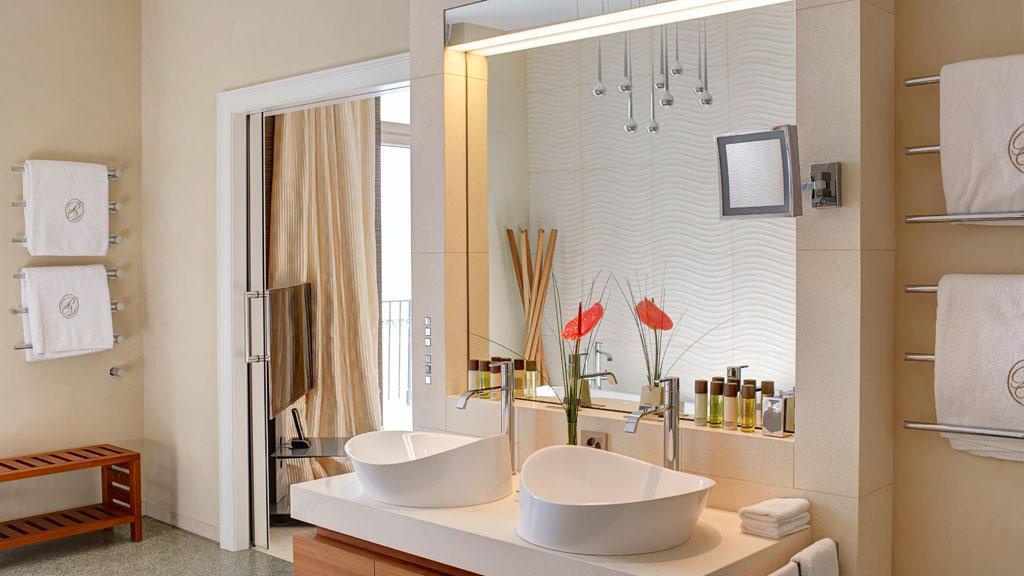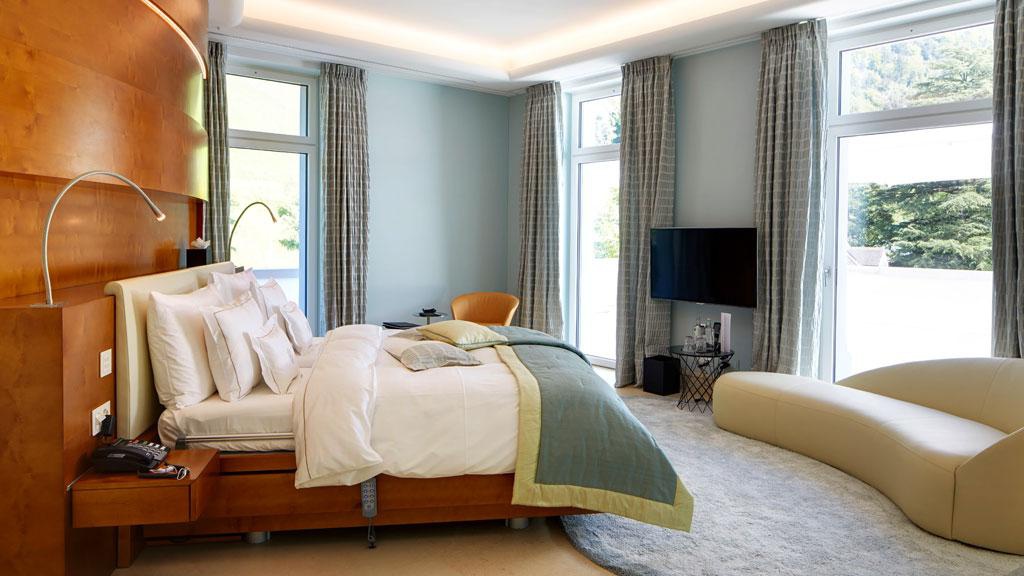 Для проживання готель надає номери з 101 комфортом для різних категорій. Номери оформлені з великим смаком і увагою до всіх деталей, обставлені затишними меблями і сучасними зручностями. Великі санвузли знаходяться в кращих класах білих і рожевих італійських і португальських мармурів, а з приватних балконів або тераси відкривається чудовий вид на озеро і чудові гори. Ви можете вибрати: