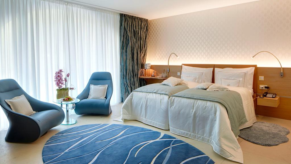 - Полулюкс- 8 одномісних і 69 двомісних номерів з чудовим видом на озеро Лукерне та гору Риги, що проводяться в м'яких, небезпечних тонах, що складається з спальні з ліжком King Size, розмірами королева або двома односпальними ліжками, затишно закривається невеликою житловою зоною, простий, відокремлений ванна кімната мармур, приватний балкон або тераса. Кількість підключених дверей надається за запитом.