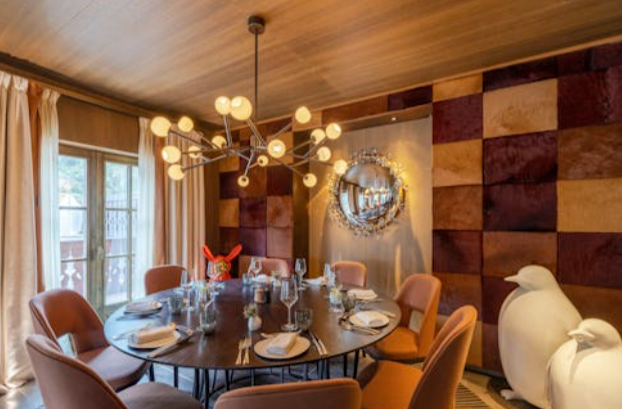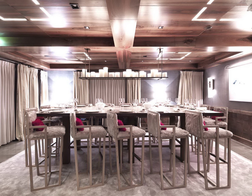 У шале є велика зона вітальні з сучасним каміном, їдальня, приватна кімната для перегляду, а також власний кабінет для спа-процедур, лаунж для відпочинку, сауна та гідромасажна ванна.