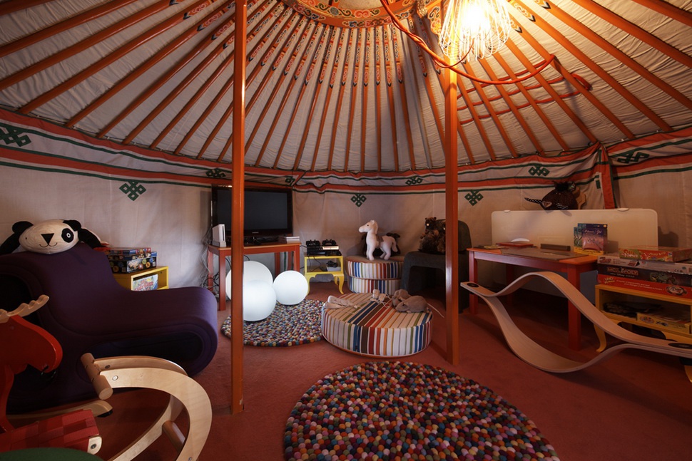 На четвертому поверсі знаходяться три спальні, тримісна вітальня з роялем, їдальня, бар, власна кухня та балкони, що обертаються навколо, з видом на схили.