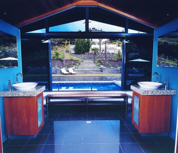 Орел Душ вілла (243 квадратних метрів): особистий басейн тераси, їдальня і вогонь, кухня, 3 спальні (двокімнатні ліжка або два окремих ліжка, одна з двоспальними ліжками), 3 санвузли. Додатково: Барбекю, Джакузі, підключення IPod. Вид на Bay-of Islands.