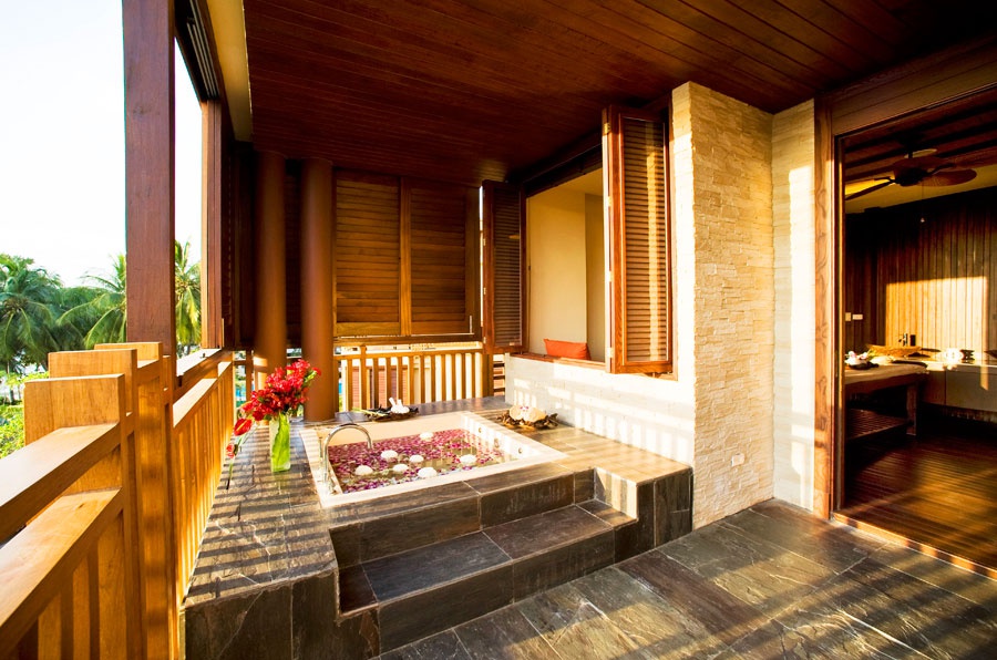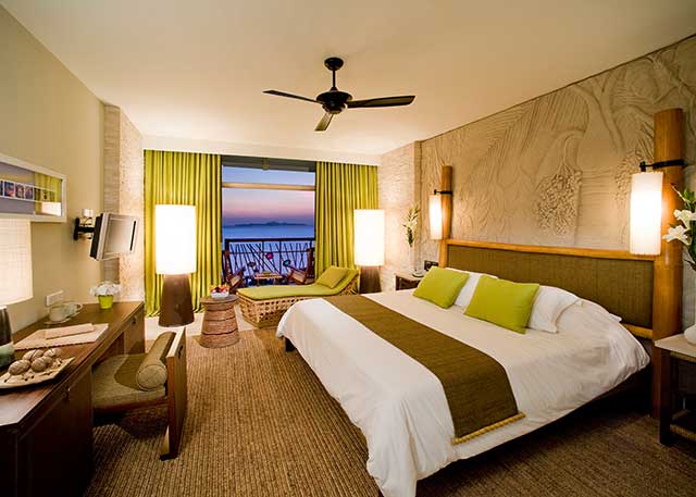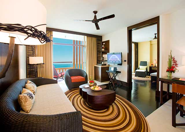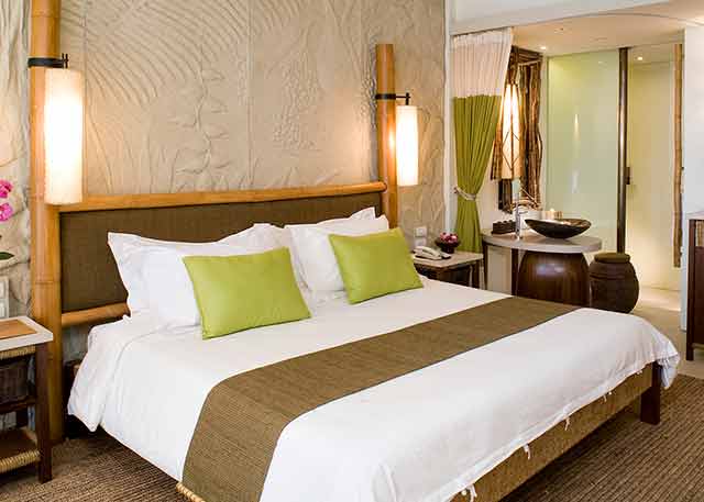42 кв. м Номер, прикрашений барельфами і декором з дерева, має спальні з ліжком " розмір туризму " , з головою бамбука, диваном і робочою зоною, посилкою, спальною ванною кімнатою з душовою кабіною, прикрашеним джакузі балконом і видом на океан. Номер ідеально підходить для медового місяця. 2 дорослих і 1 дитина.