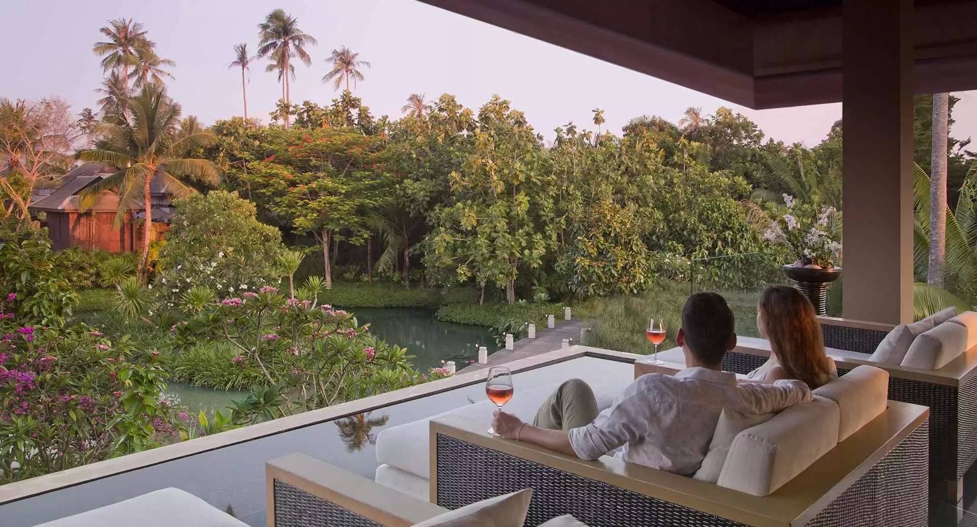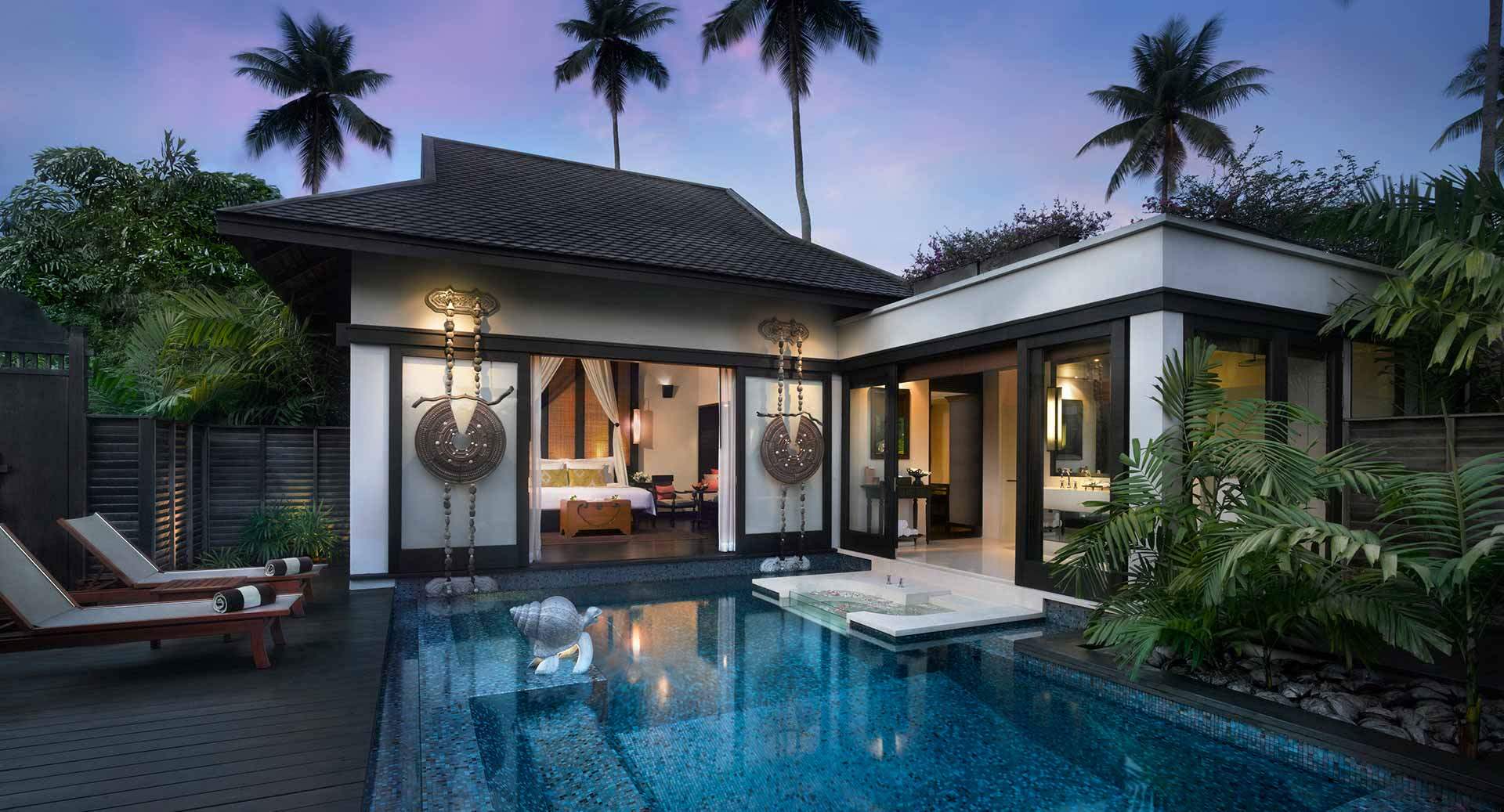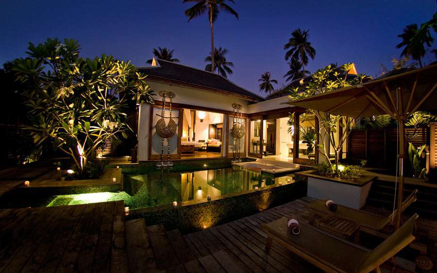 206 кв.м, вілла в тайському стилі, розташована біля лагуни сала, включає спальню, вітальню, ванну кімнату, відкриту та криту обідні зони, терасу з джакузі та власним басейном, павільйон, розташований над водами лагуни, солярій із шезлонгами. Обслуговування, щоденний післяобідній чай. Розміщення - 3 дорослих та 1 дитина.