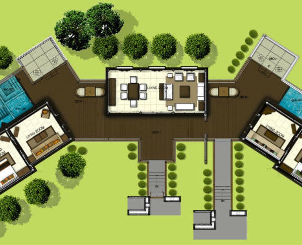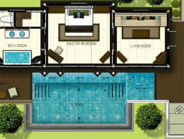 Presidential Pool Villa: 316 м2, розкішний номер включає в себе спільну вітальню з обідньою зоною, дві спальні з санвузлами і вітальними зонами, тераса з'єднує дві спальні зшивки, два басейни.