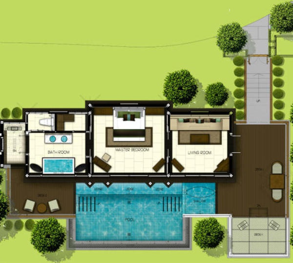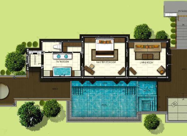 Є 78 вілли в різних категоріях. Замкнені та відкриті зони простих вілл плавно плавно плавно плавно плавно плавно плавно плавно поєднуються блискучі інтер'єри в гармонії вишуканого сучасного дизайну та тонких елементів традиційного тайського декору: м'які меблі, чудові шовкові тканини та місцеві майстри. Кожна вілла має 35 м2 власних басейнів, а тераса відкриває чудовий вид на аквамаринові води Сіамської затоки і хороші садиби.