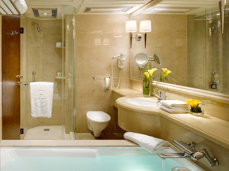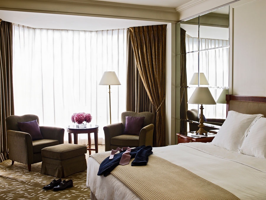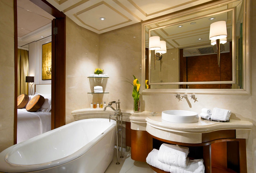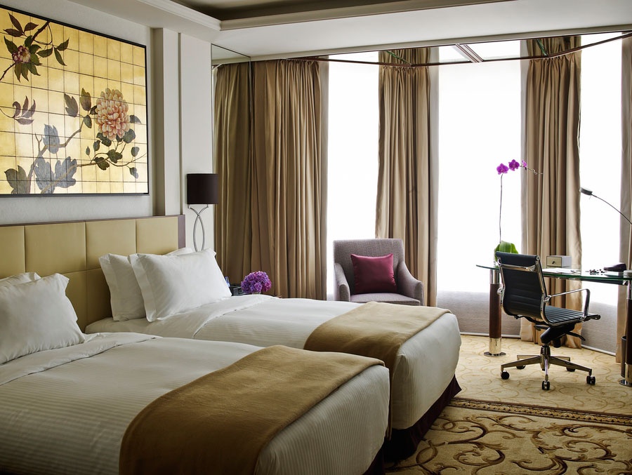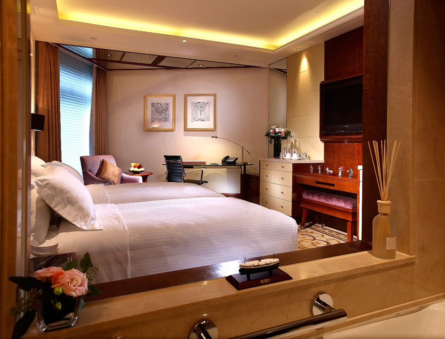 Grand Langham Room: 33 м2; складається з спальні з двоспальним ліжком або двома односпальними ліжками, відкритою ванною кімнатою з розсувними дверима.