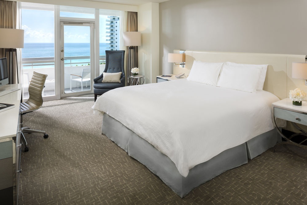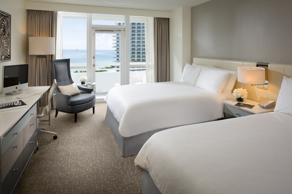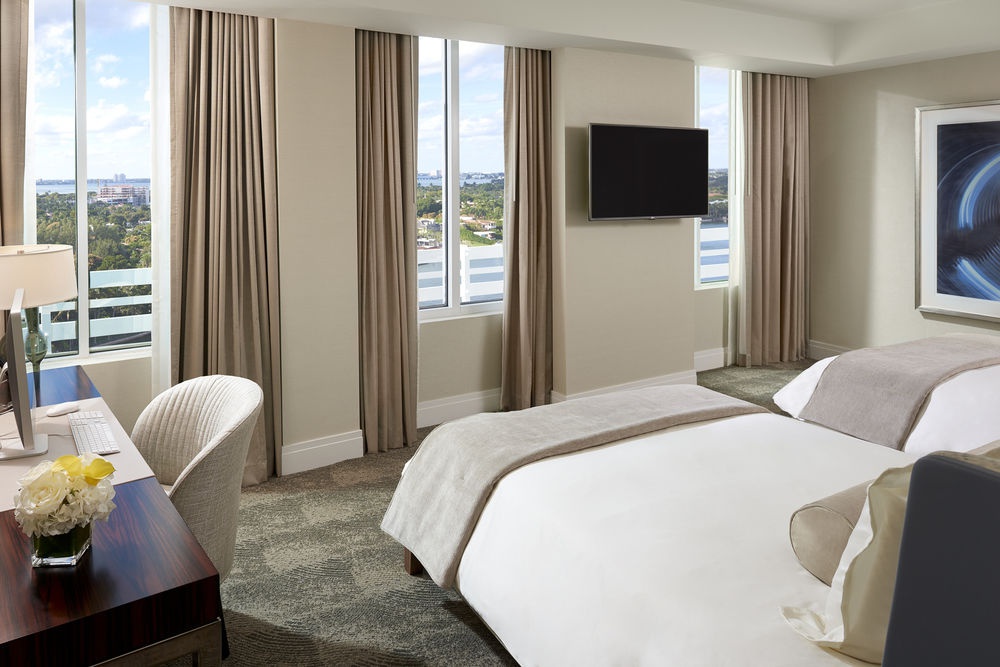 Полулюкс Переглянути Гість: 25-27 кв.м. З спальні з двоспальним ліжком або двома королевими ліжками, ванна кімната, вид на бухту Біскейн або центр Майамі.