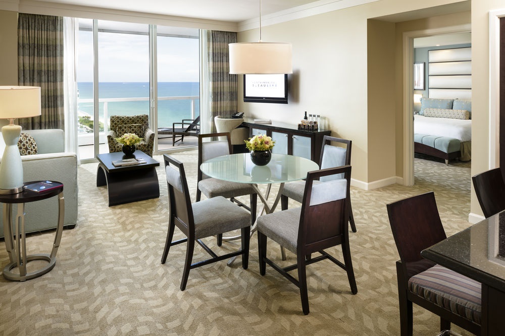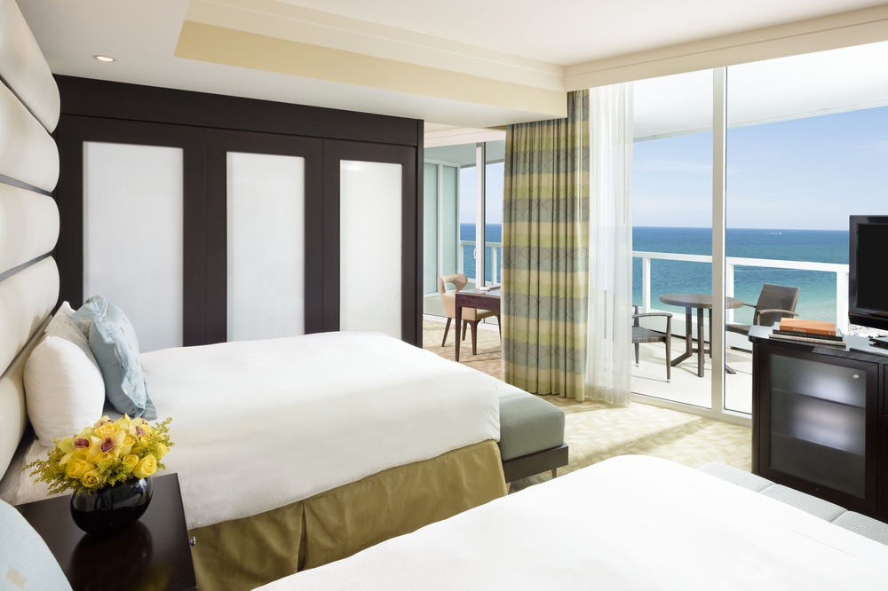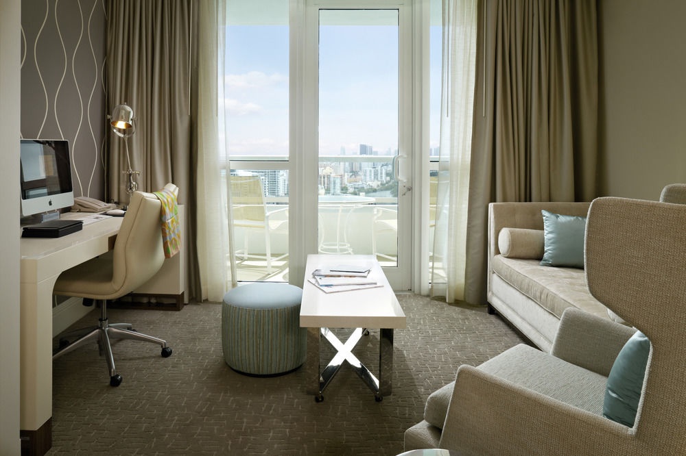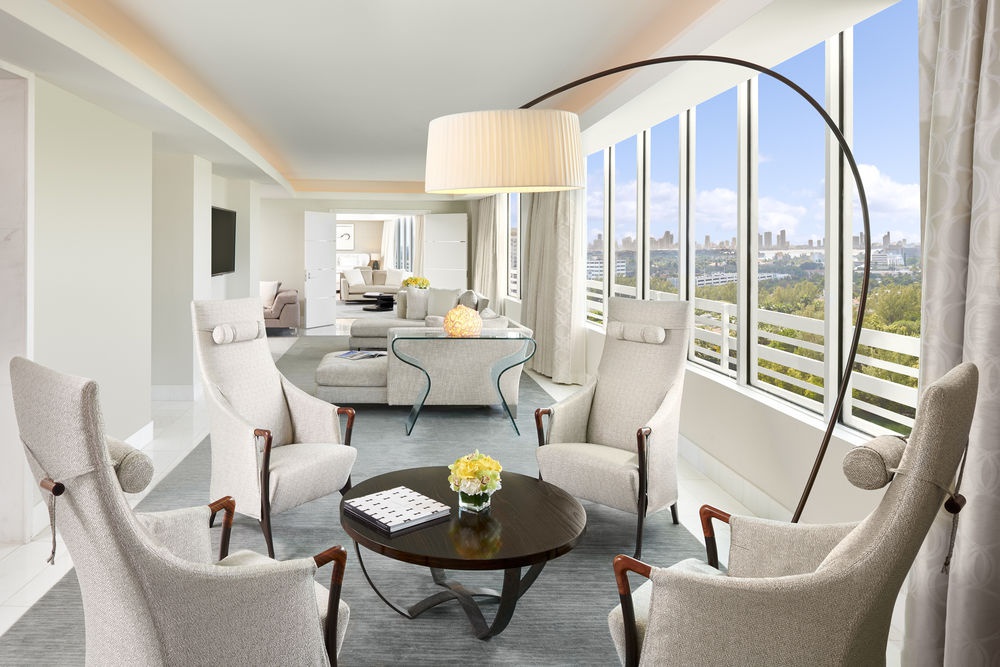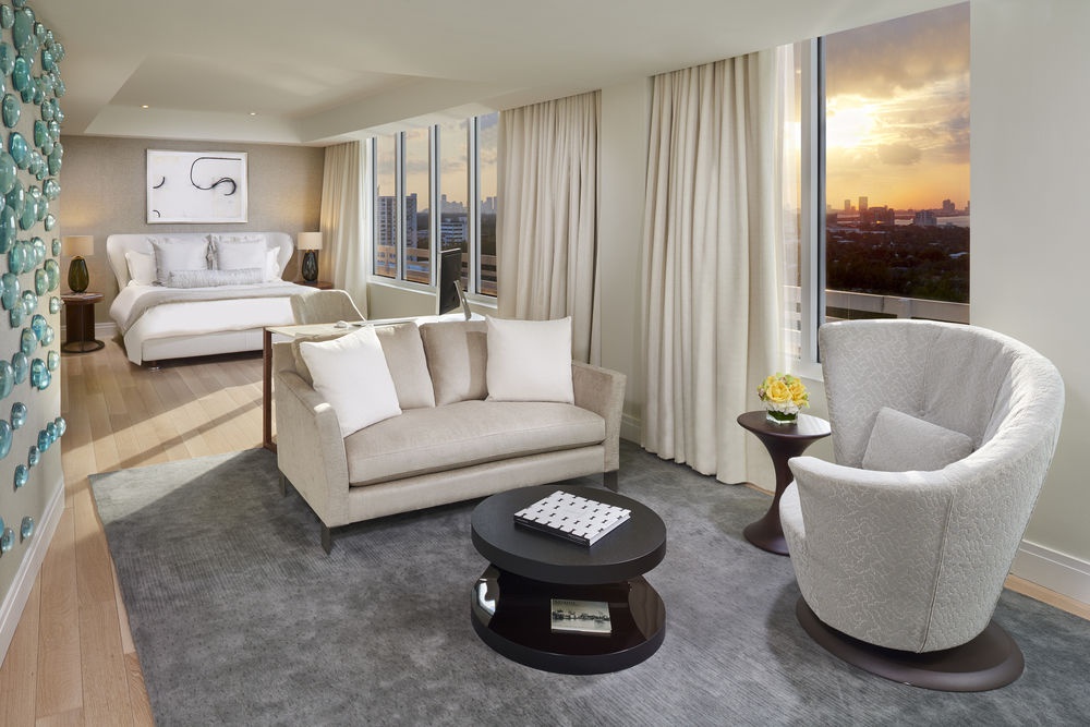 Тресор Bay View Junior Suite: 40-46 кв.м. Готель знаходиться в районі Тресор, що складається з спальні, вітальні, кута прогріву з міні-холодильником, мікрохвильовою піччю і миттям, ванної кімнати, балкон з видом на бухту Біскайне або Майамі Бей.