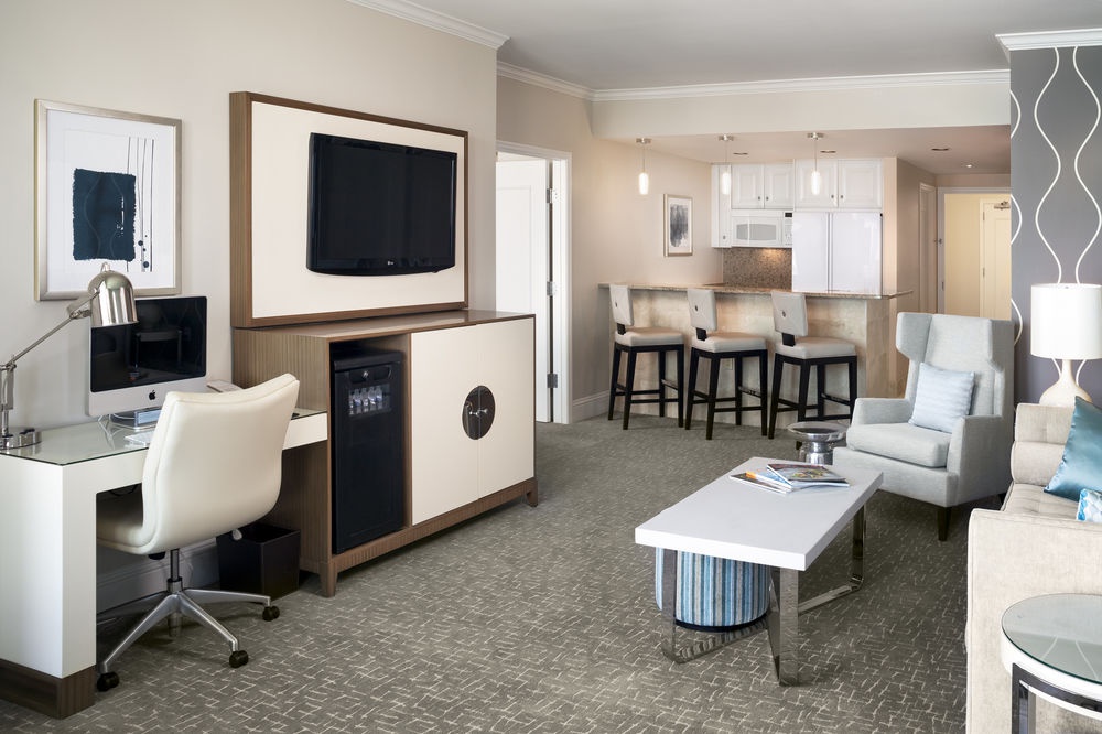Тресор Bay View One Bedroom Suite: 87-92 м2. Готель знаходиться в районі Тресор, що складається з спальні, вітальні з зоною для їжі і повністю обладнаною кухнею, двома санвузлами, балконом з видом на бухту Біссейне або центру Майамі.