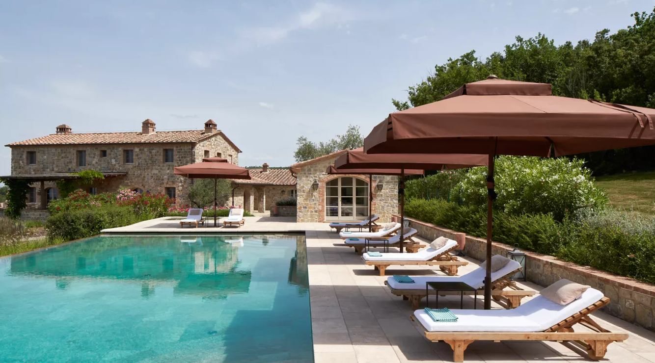 Комплекс розкішних старовинних вілл Rosewood Castiglion del Bosco розташований недалеко від річки Ombrone на території величезного маєтку Castiglion del Bosco у парку Val d'Orcia.