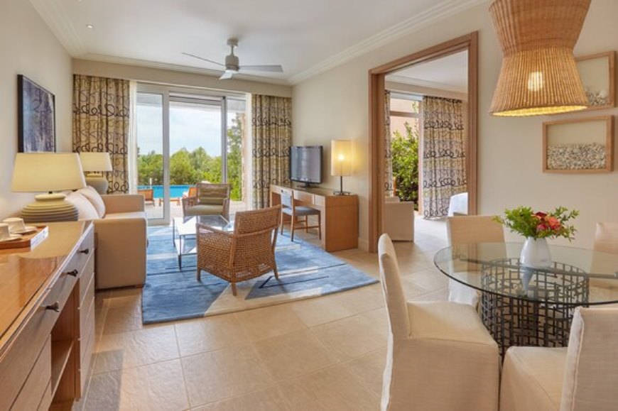 70-80 кв. м. Сімейні люкси з чудовими видами на ландшафтні сади та басейни курорту складаються зі спальні з ліжком розміру «king-size», ванної відкритого плану, окремої вітальні з обідньою зоною, диван-ліжком та зоною відпочинку, ванної кімнати з душем, окремого туалету та мебльованої тераси. Доступно бронювання додаткового місця для дитини. Розміщення: 3 особи