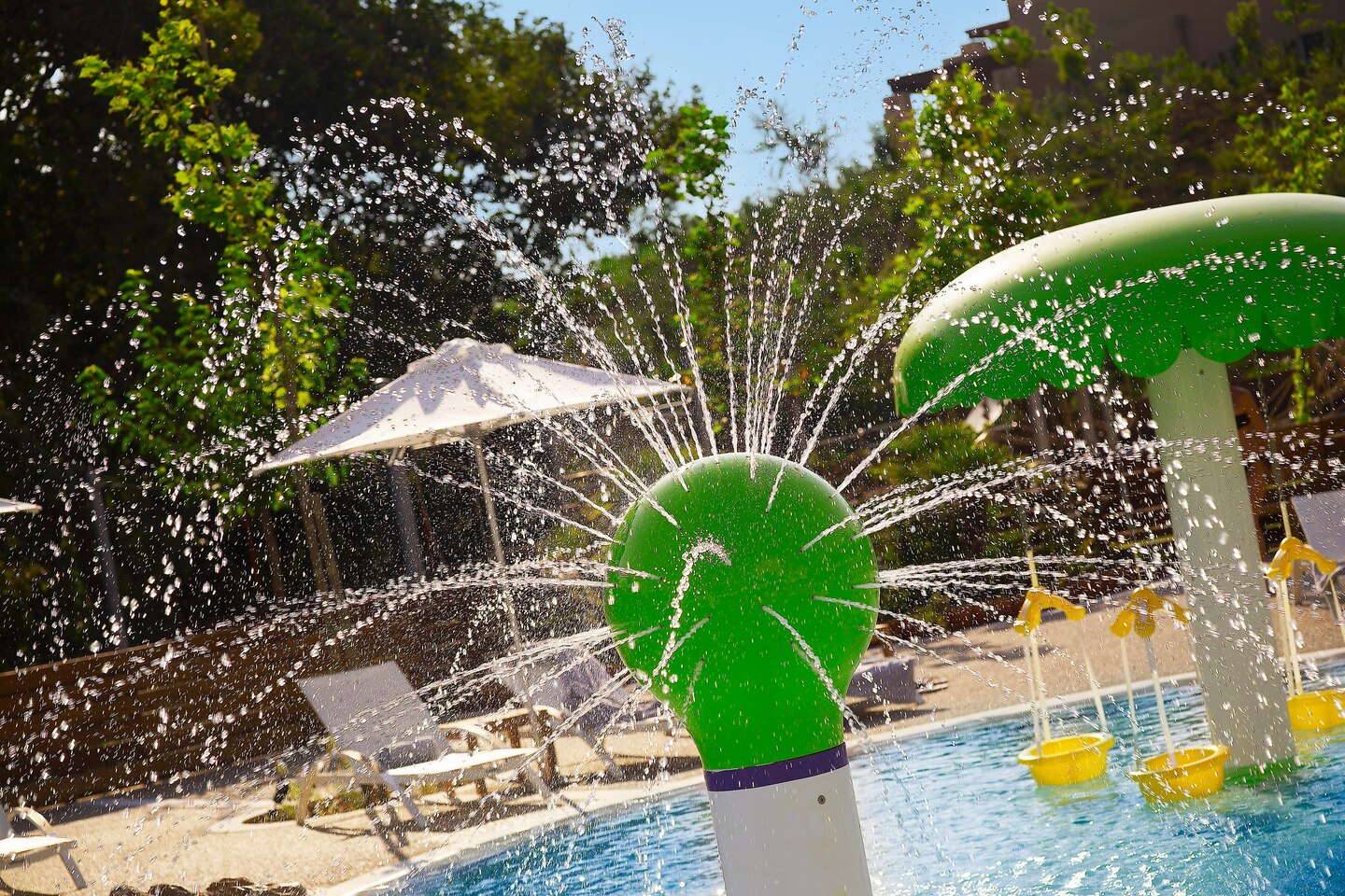 70-80 кв. м. Люкси з видами на готельні сади, басейни та оливкові гаї складаються зі спальні з ліжком розміру «king-size», окремої вітальні з обідньою зоною, диван-ліжком та зоною відпочинку, ванної кімнати з душем, окремого туалету та мебльованої шезлонгами тераси з власним басейном (23 кв. м). Доступно бронювання додаткового місця для дитини. Розміщення: 5 осіб.