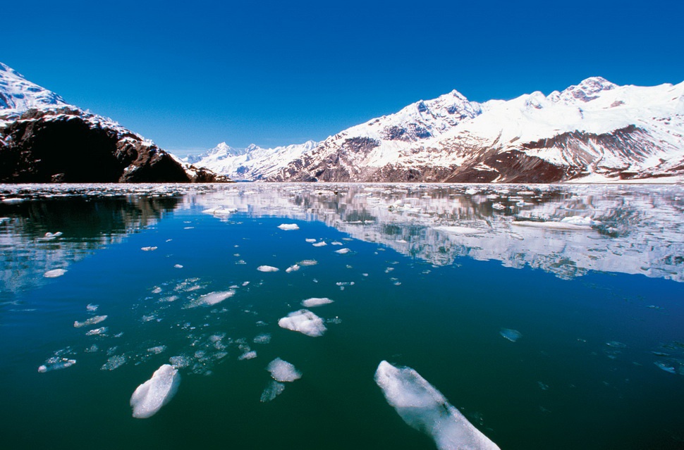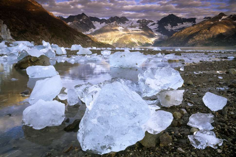 Найвідоміший льодовик Муір-Глазер 3 кілометри шириною і висотою 80 метрів. Але клімат постійно змінюється, а в 1990 році відступається льодовик. На сьогоднішній день туристи мають можливість спостерігати за маргері і Ламплугами. Ведуться з снігових гір утворюють айсберги. Всього 9 льодовиків і 4 айсбергів.
