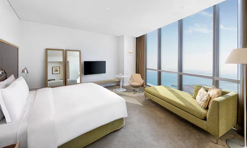Шикарні інтер'єри та чудові краєвиди на море чи місто. Розслабтеся у цьому номері класу люкс площею 50 кв. м з одним двоспальним ліжком та душовою кабіною. У номері є вікна від підлоги до стелі із захоплюючим видом на море або місто, безкоштовний Wi-Fi та HDTV. Вміщує 3 особи.
