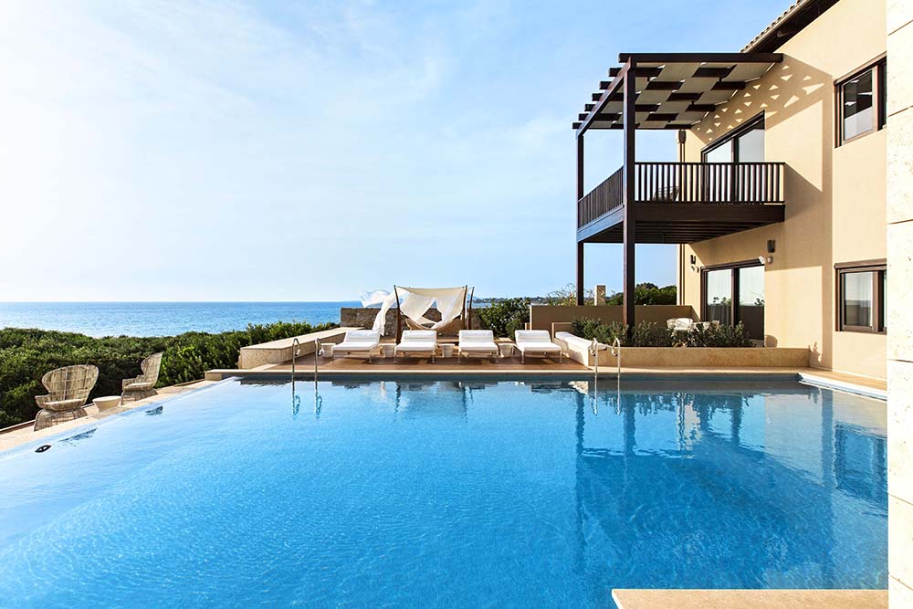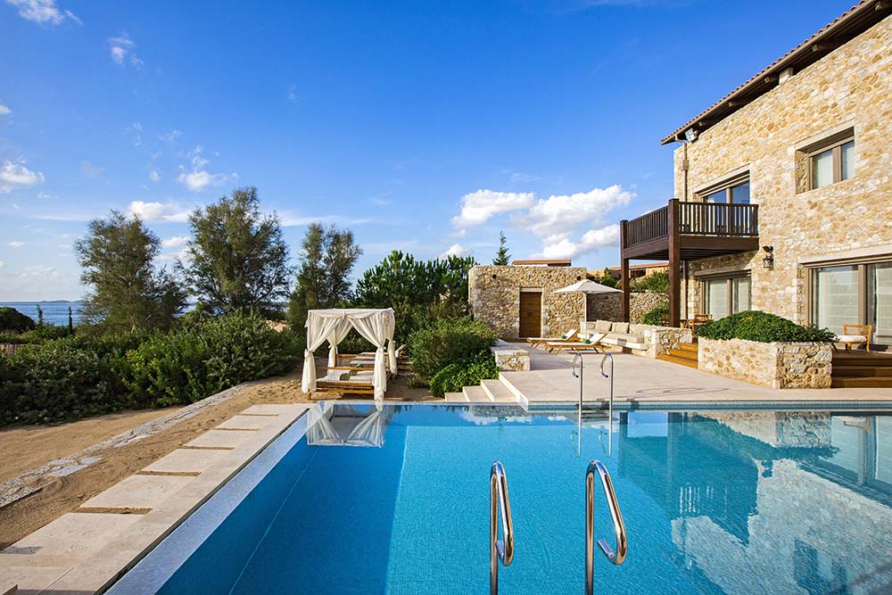 192 кв. м. Окрема вілла з шикарним інтер'єром складається з двох спалень: одна з ліжком «king-size», інша – з двома ліжками розміру «twin», вітальні з обідньою зоною та зоною відпочинку з домашнім кінотеатром, двох мармурових ванних кімнат з ваннами та душем, бібліотеки, вбиральні, просторої мебльованої тераси з власним басейном (73 кв. м.), ліжками для денного відпочинку, шезлонгами, зоною для барбекю та чудовим видом на Іонічне море. Прямий вихід на пляж. Доступно бронювання 2 дитячих ліжок. Гостям вілли надається VIP-обслуговування. Розміщення: 5 осіб.