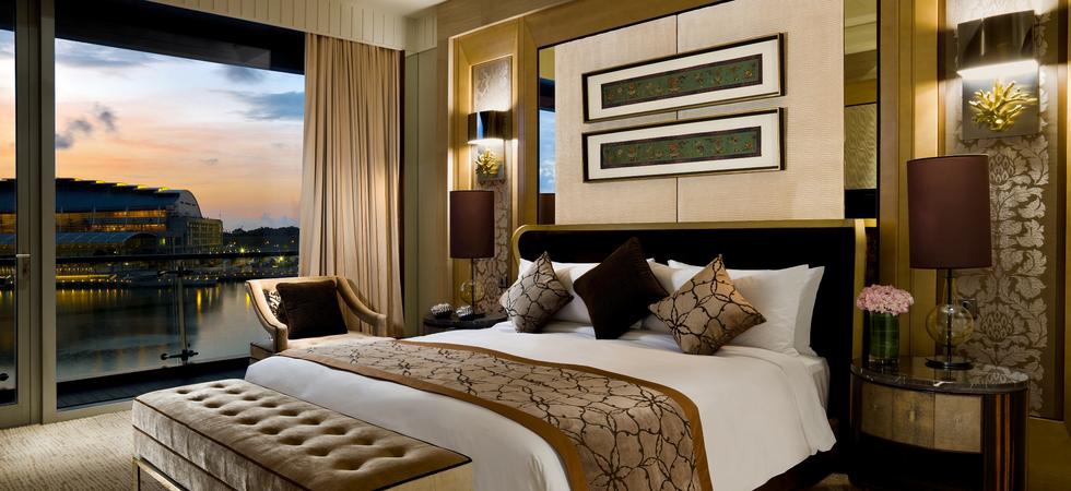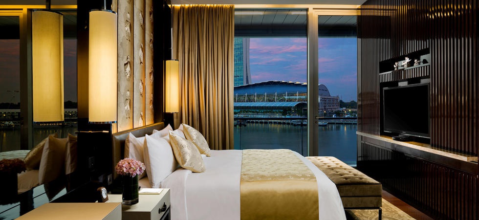 Прем'єр-Бей Номер: Розташований на 1-му поверсі, складається з спальні, ванної кімнати, балконних камінів з видом на Сінгапурські хмарочоси і затоки Маринської затоки.