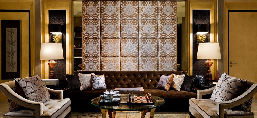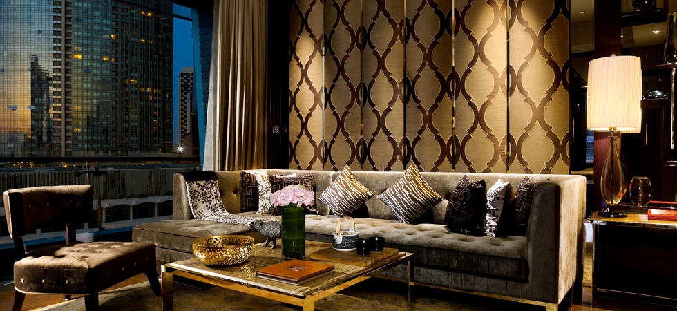 Люкс Shenton: Розташований на 4-му поверсі, виконаний в індійському стилі, який проводиться в шоколаді, шафрані і срібних золотистих тонах і шовкових панелях; названий губернатором Сенттоном Томасом, виправлено в 1934-42. З спальні, вітальня, ванна кімната, балкон з видом на затоку Marina Bay.