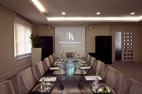 • Готельний конференц-зал для 15 осіб і обладнаний моторним столиком з процесором DSP, мікрофонами, DVD HD, екраном, проектором, відео та звукозаписними камерами.