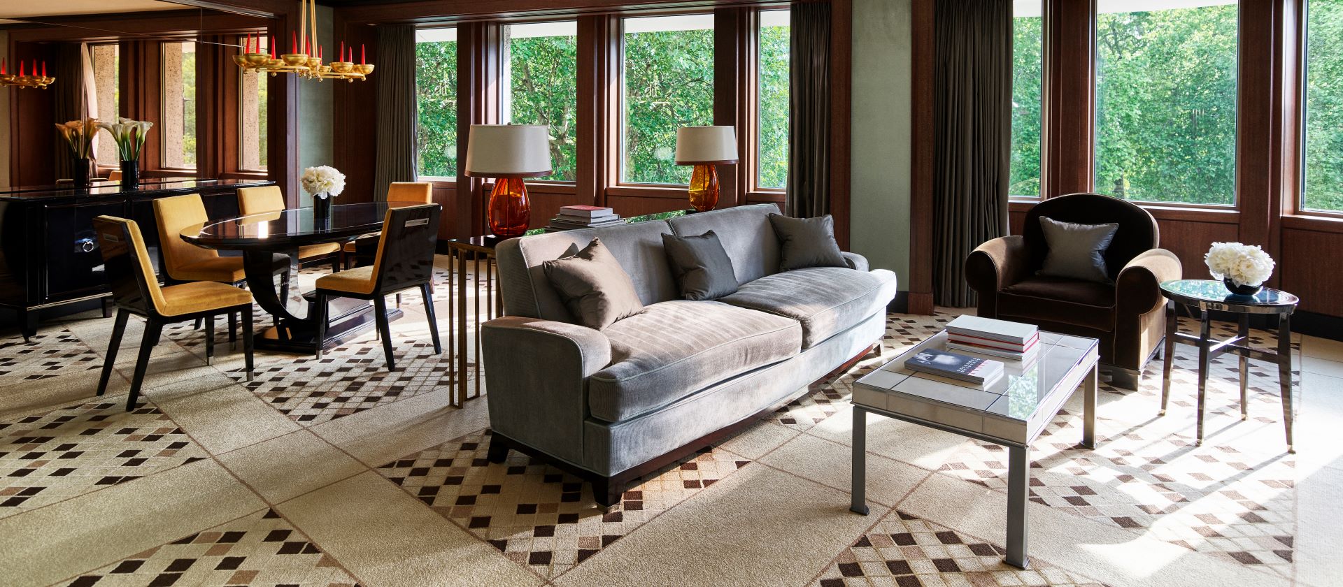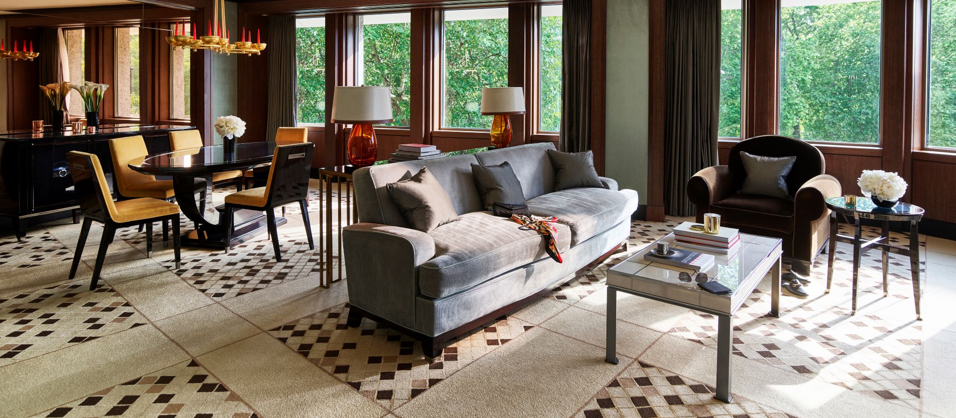 171 кв. м Гостинний люкс з великим видом на парк Hyde складається з трьох затишних спальних місць з двоспальними ліжками з двоспальними ліжками, просту окрему вітальню з робочим столом, зоною депледа і рекреаційним хабаром. Три підлогові санвузли в італійських мармурах мають санвузол, душову кабіну і два раковини. Місце: 6 осіб.