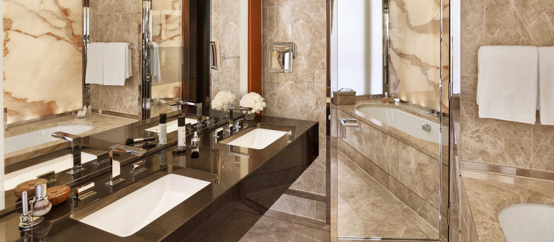 136 кв. м Люкс «люкс» складається з двох спалень з ліжком розміру, окремою вітальнею з робочим столом, обідньою зоною та рекреаційною гавань. Двокімнатні санвузли в італійських мармурах мають санвузол, душову кабіну і два раковини. Місце: 4 чол.