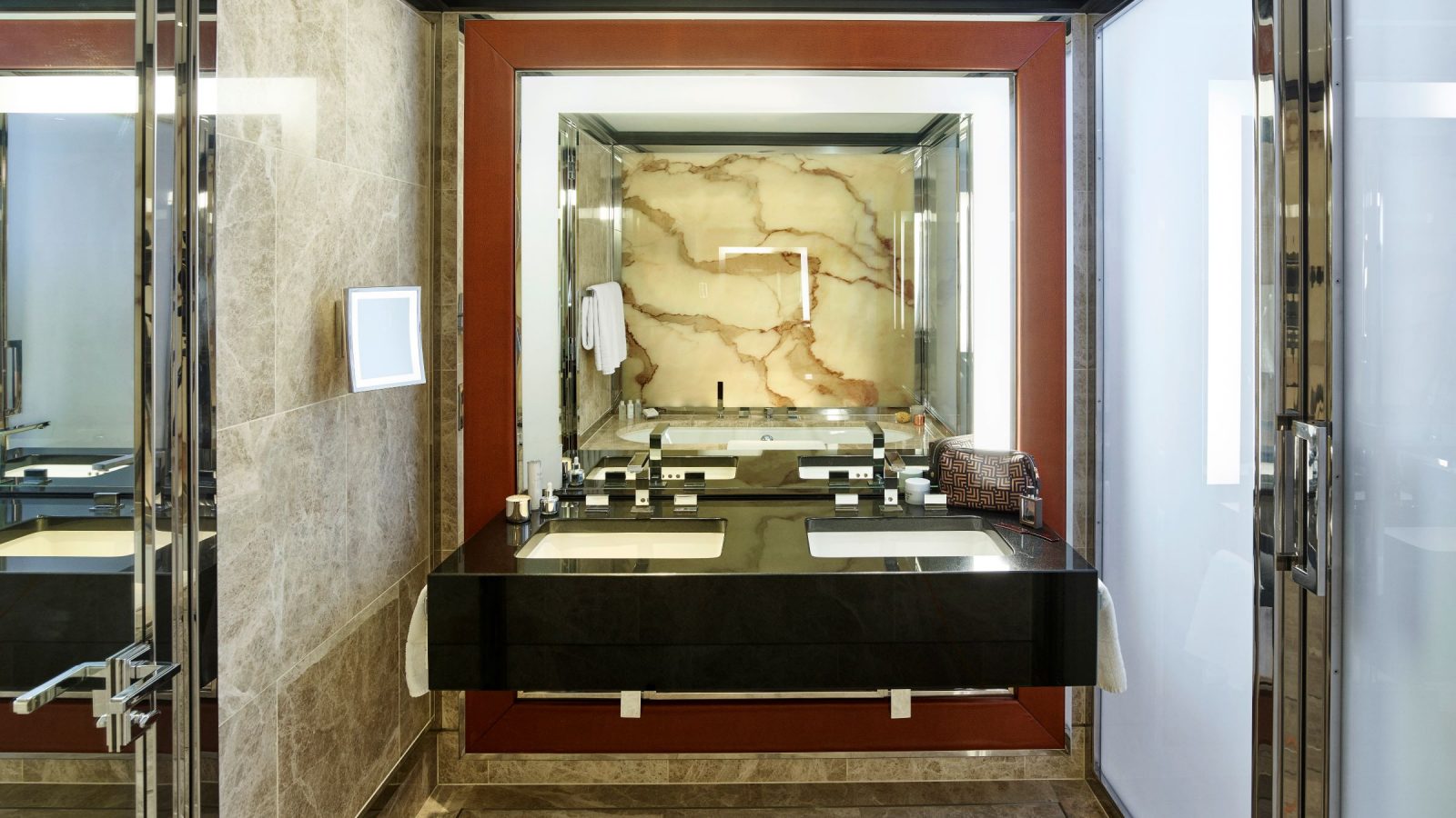 87 кв. м. Номер складається з спальні з ліжком розміру king-size, окремою вітальнею з робочим столом, обідньою зоною, зоною відпочинку, передпокою, гостьовою кімнатою, балконом 15 кв. м. Ванна кімната з підігрівом підлоги розташована італійським мармуром має ванну кімнату, душову кабіну і дві раковини. Місце: 3 чол.