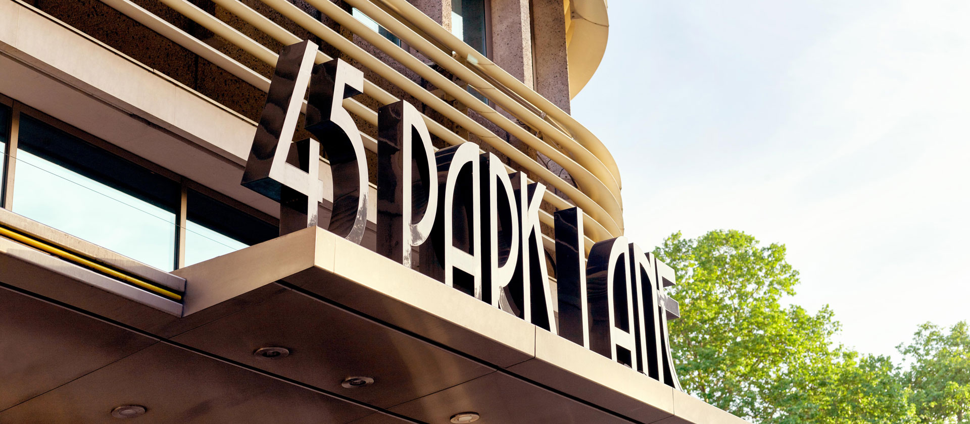 У поєднанні з видатною архітектурою, динамічними інтерфейсами та сучасними артами 45 Park Lane є реальна розкіш, де кожен гість має відмінні послуги на основі індивідуальних побажань. 45 номерів, люки та великові пентхауси готелі є одним з найбільших в Лондоні. У кожному номері 45 Park Lane є захоплюючий вид на Hyde Park, в якому є тераса. Номери оформлені в традиційному стилі, обладнаних сучасними меблями, обладнаними телевізорами та бездротовим доступом до Інтернету.