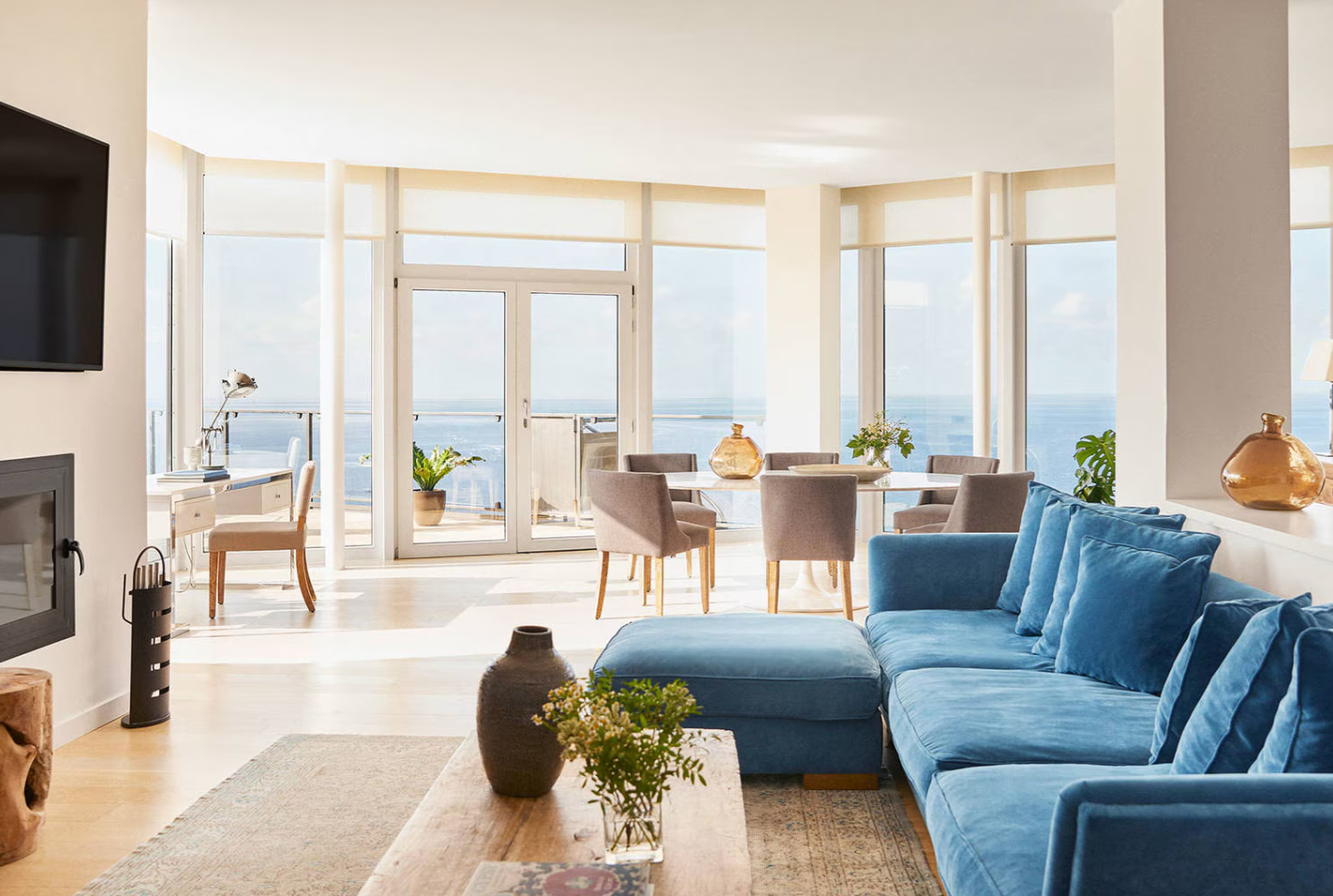 - Приватна тераса з видом на море зі скляним або стінним бар'єром