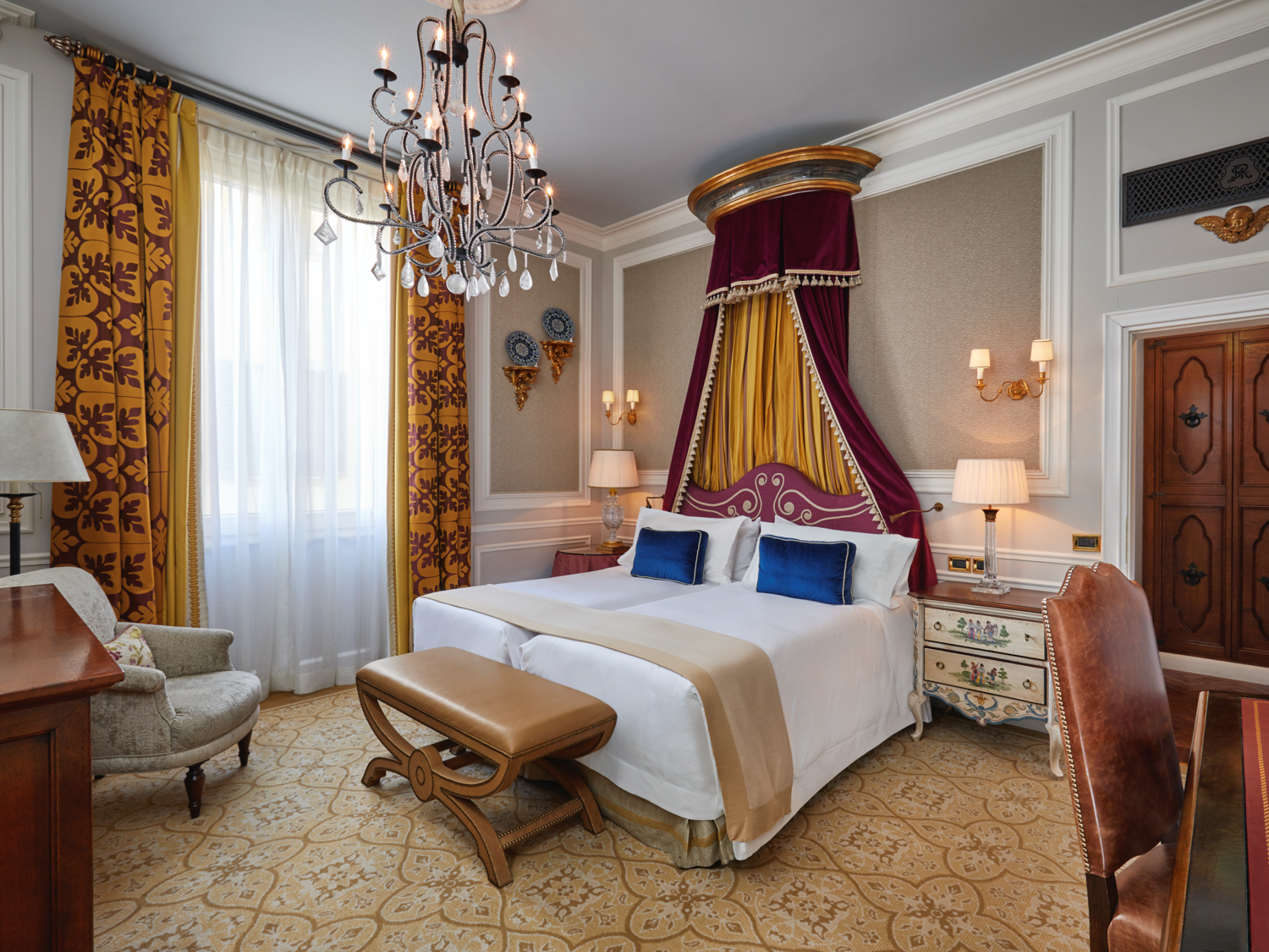 У готелі 149 номерів різних категорій. Номери захоплюють вишуканим оздобленням у палацовому стилі: унікальні фрески ручної роботи, антикварні меблі, блискучі кришталеві канделябри, розкішні тканини.