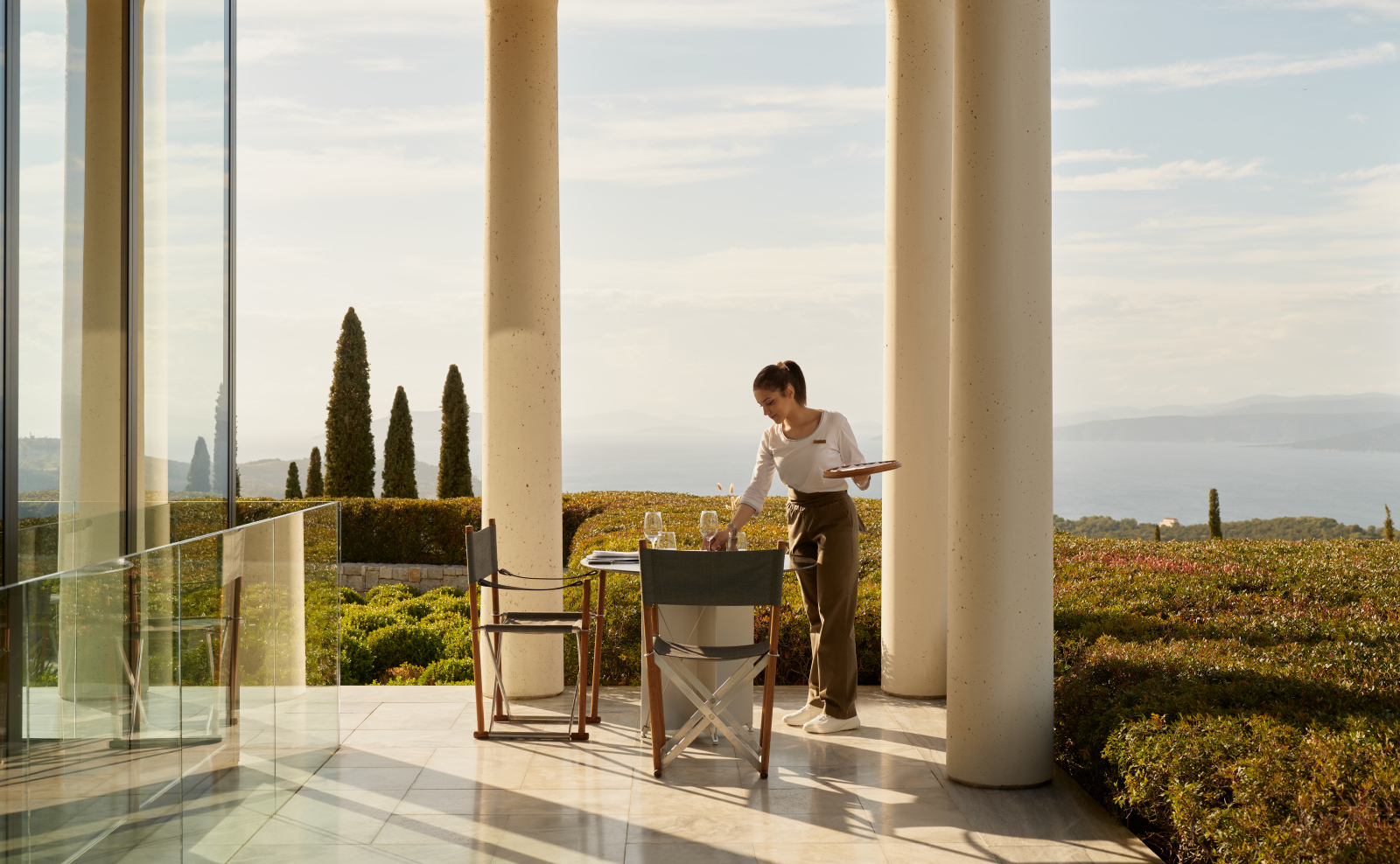 Пелопоннес, що знаходиться в оточенні руїн, що охороняються ЮНЕСКО, з його пляжами вже тисячоліття є центром грецької культури. Розташований на східному узбережжі Пелопоннесу поблизу Порто-Хелі, Аманзое — це сучасний Акрополь, з якого відкривається панорамний вид на оливкові гаї та Егейське море. Павільйони та вілли пропонують приватні басейни з приголомшливими краєвидами та запашними садами, а на пляжі чекають швидкісні катери, щоб переміщатися між сусідніми островами.