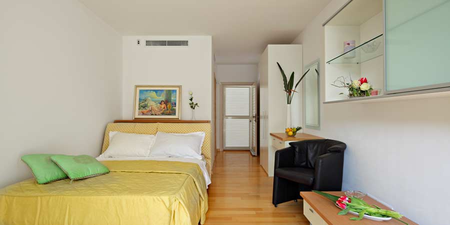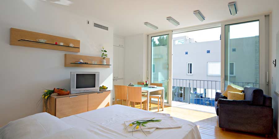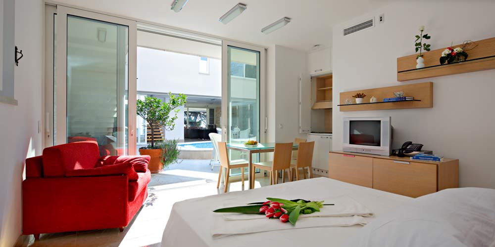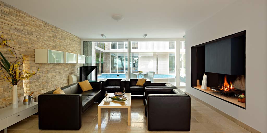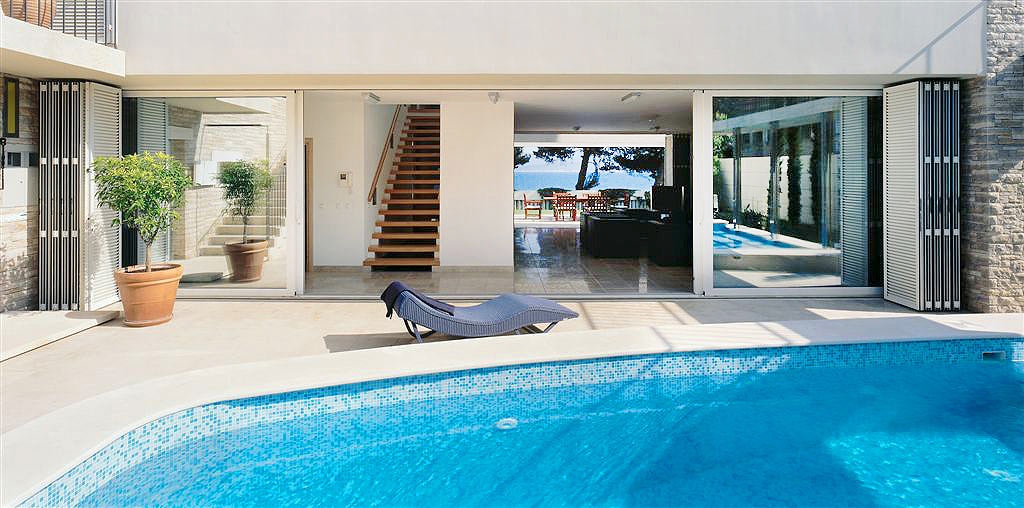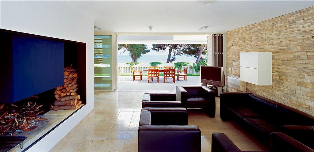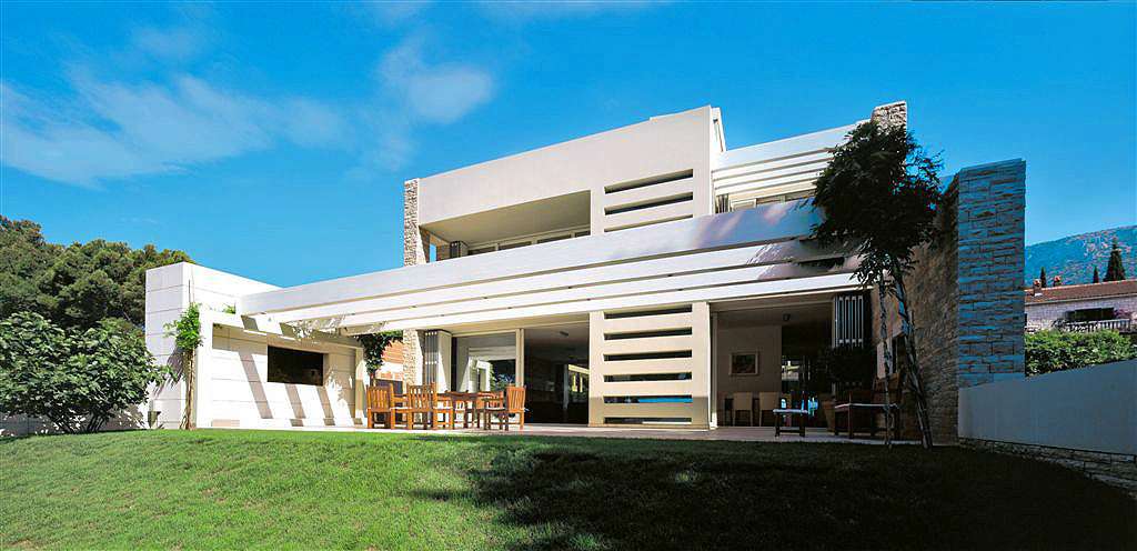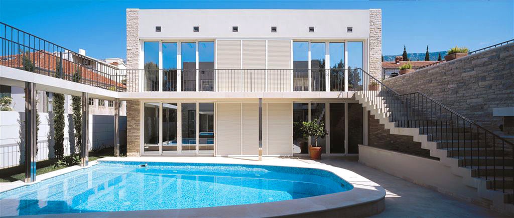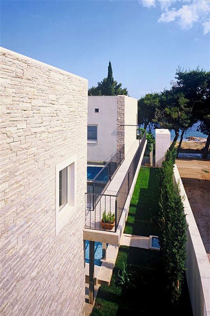 Перша житлова будівля вілли, розташована ближче до моря, складається з двох поверхів. На першому поверсі є сучасна кухня з критою їдальнею та простора вітальня з каміном. На другому поверсі цієї будівлі знаходяться головна спальня з ванною кімнатою, оснащена джакузі-ванною, душовою кабіною, великим гардеробом та балконом з чудовим краєвидом на море. Поруч із головною ванною кімнатою розташовані ще одна спальня, оснащена двоспальним ліжком, окремою ванною кімнатою з душем та балконом, а також кімната для рекреації, обладнана стаціонарним велосипедом, малими вагами та іншими обладнаннями для легкої рекреації.