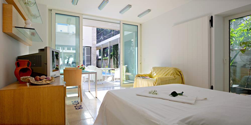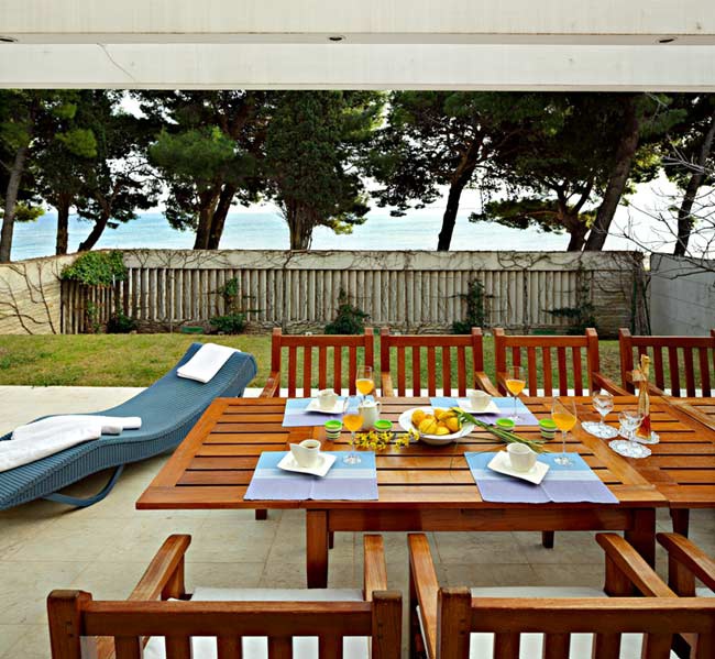 Обидві будівлі вілли Castello Bol пов'язані загальною терасою, в центральній частині якої розташований чудовий басейн завидних розмірів (4х6 м). До складу ретельно та творчо розробленої присадибної ділянки вілли входить і велика тераса з чудовим видом на море та великим дерев'яним столом. Цей казковий куточок є царством «прохолоди», і в найспекотніші літні дні він перетворюється на справжній маленький рай для всіх гурманів, які можуть насолодитися смаженими спеціалітетами завдяки барбекю на відкритому повітрі.