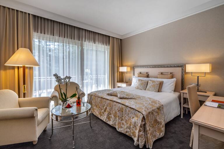 Вишуканий комфортабельний двомісний номер з елегантними кольорами від бежевого до блискучого. Для відпочинку, де форма та функціональність поєднуються в дивовижному поєднанні, яке захопить вас. Кожен елемент цього середовища був розроблений, щоб додати вашому відчуттю абсолютного розслаблення, зробивши ваш час, проведений тут, інтерлюдією піднесеного комфорту.
