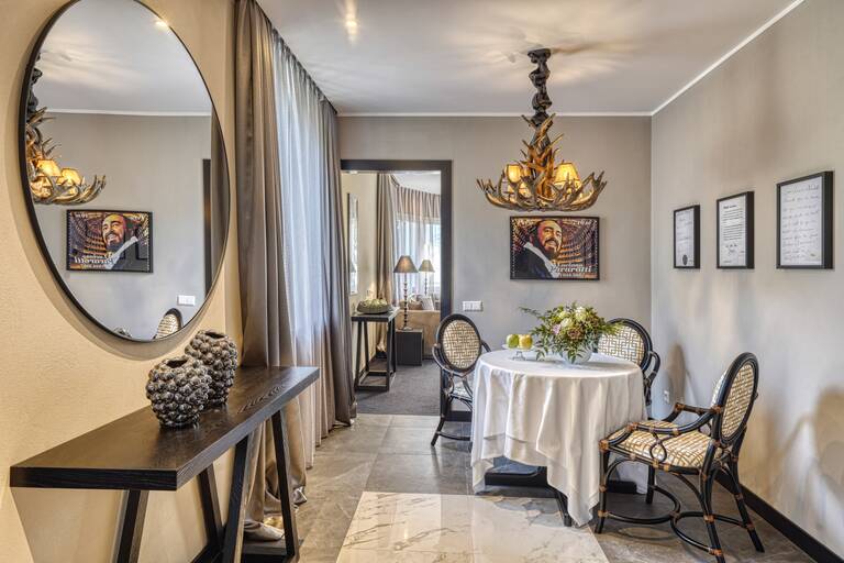 Слідуйте стопами одного з найвидатніших тенорів усіх часів, щоб відчути повне фізичне та психічне омолодження. Пориньте у кольори та атмосферу, які так цінує "Big Luciano". Тут, у VILLA EDEN, він почувався як вдома, і для нас велика честь чути, як він сміється та співає, а також розважається під час щасливих годин карткових ігор. Цей напівлюкс є нашою даниною пам’яті незвичайній людині та художнику, який обрав наше місце відпочинку своїм привілейованим оздоровчим місцем.