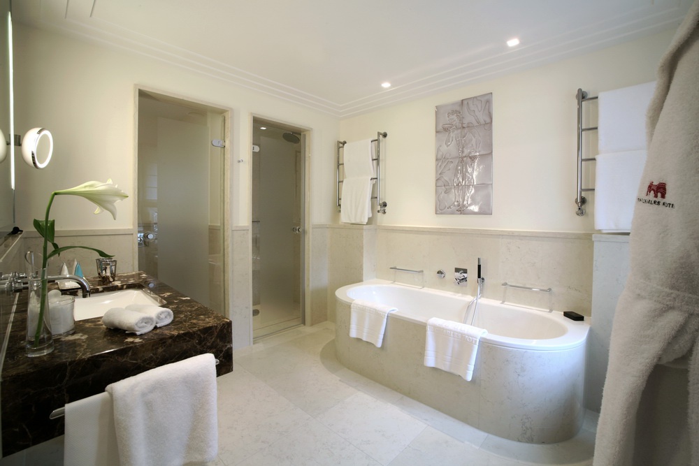 Телевізор у ванній кімнаті. На останньому поверсі. Можливе поєднання з 3 номерами люкс (загальна площа 455 кв. м). Вид міста і Альп. Ці номери мають спеціальні привілеї.Класичний номер (king / twin)40 кв. м. У спальні кімнаті з вітальнею (з ліжком " розмір і цитата; або два окремих ліжка), санвузол з ванною кімнатою і душовою кабіною. Вид ботанічного саду.
