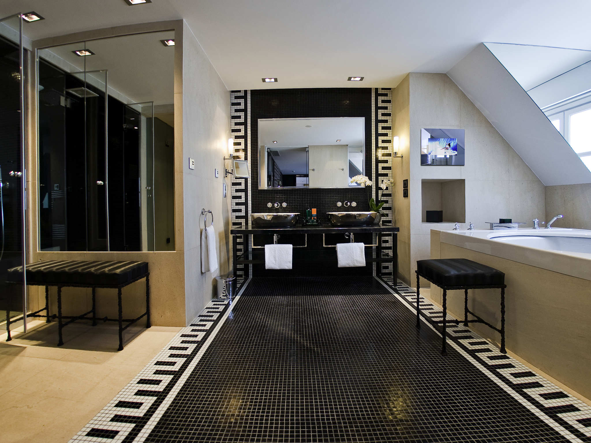 100 кв. м. Шикарні просторі апартаменти з видом на престижний паризький квартал складаються з великої спальні з ліжком розміру king-size та гардеробної, вітальні з диваном-ліжком, кабінету, ванної кімнати з джакузі, окремою душовою та хаммамом, окремого туалету. Розміщення: 5 осіб.