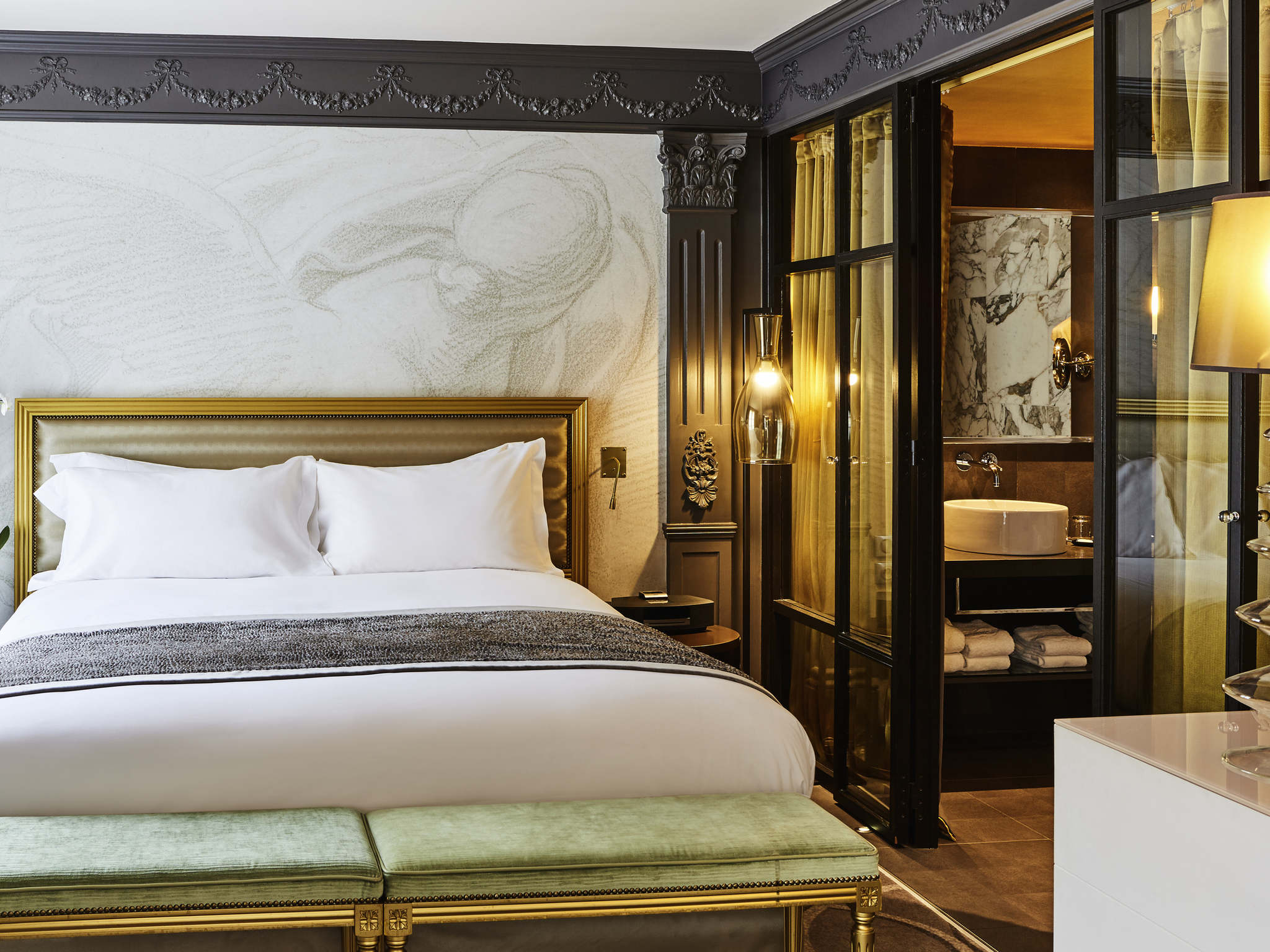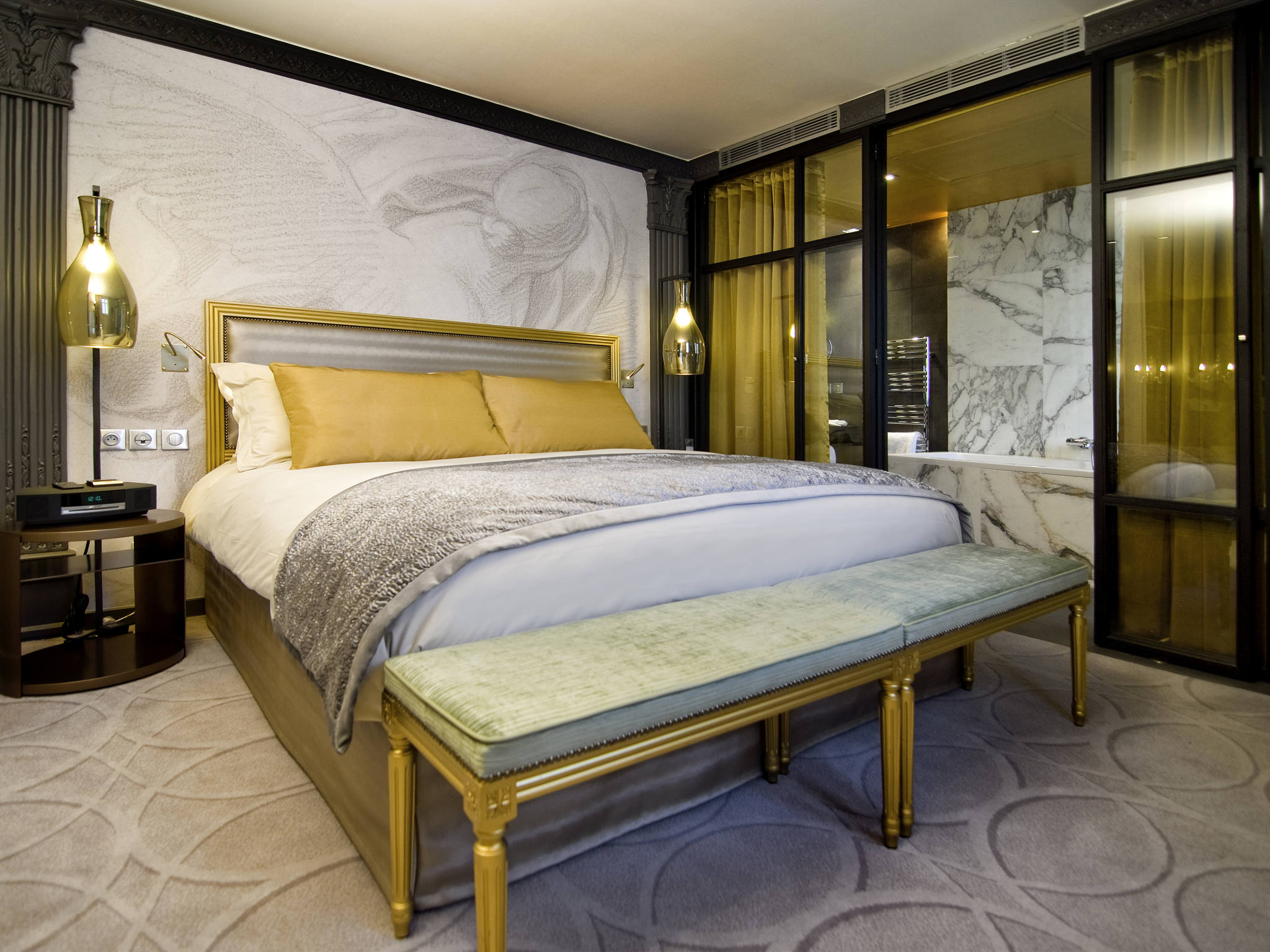 45 кв. м. Люкс, оформлений з французьким шиком, складається зі спальні з двоспальним ліжком Sofitel MyBed і гардеробної, вітальні, ванної кімнати з окремою душовою. Розміщення: 4 особи.