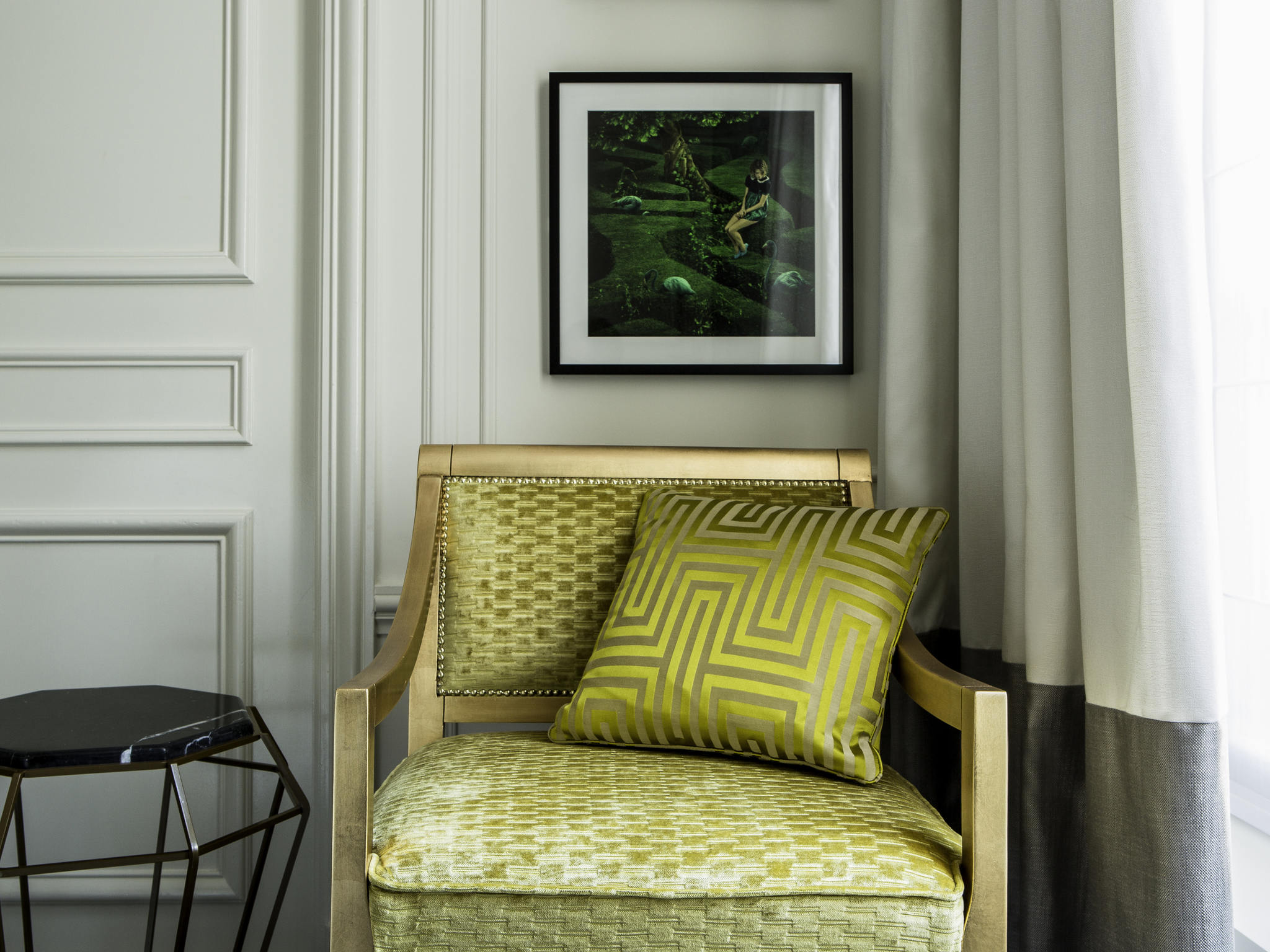 Номери в Sofitel Paris Le Faubourg оформлені в стилі, що увібрав різні епохи. У вишуканому дизайні поєднуються художні ідеї минулого та новітні матеріали. Найдрібніші деталі інтер'єрів, що створюють гармонійний ансамбль, покликані розширити простір номера та зробити його світлішим.