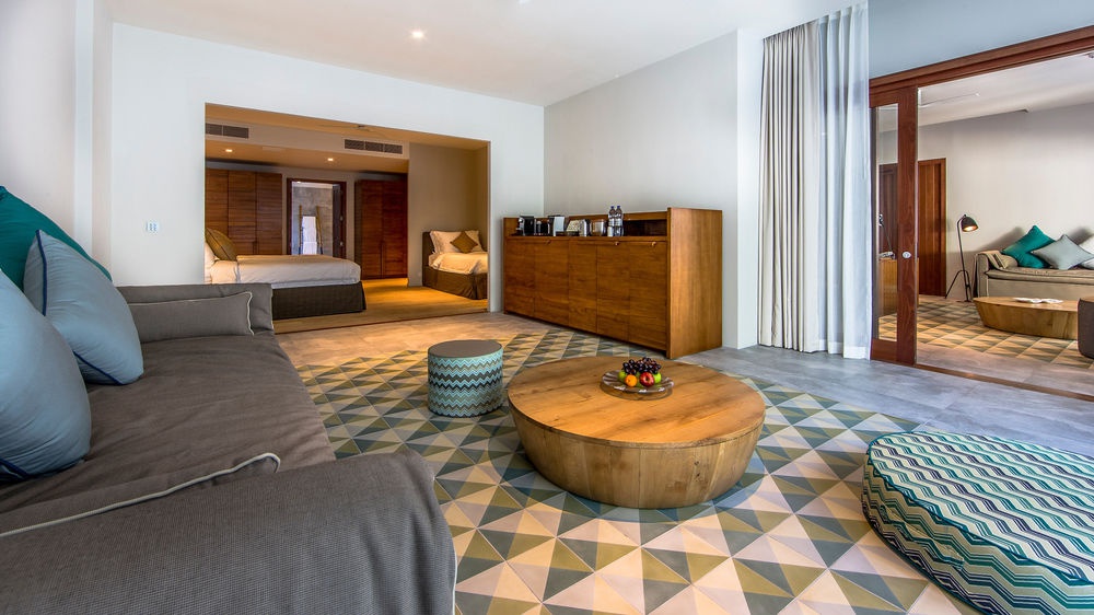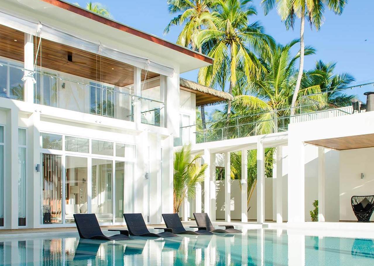 Просторі пляжні дворівневі резиденції складаються з 4 спалень, які мебльовані 2 ліжками розміру king-size та 2 – розміру twin, вітальні, обладнаної кухні-їдальні з барною стійкою, окремою їдальнею зі столом на 10 персон, тераси з обідньою зоною,гардеробної, чотирьох ванних кімнат з ваннами, балконів, внутрішнього дворика з душовою кабіною, 11 метрового басейну-інфініті з прісною водою, тераси із зоною для засмаги та подвійним гамаком. Доступно бронювання 2 додаткових спальних місць, номери обслуговуються власними дворецькими. Розміщення: 8 осіб.