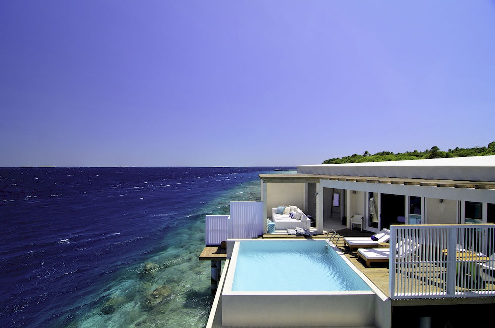 400 кв. м. Розкішні надводні вілли з видами на Індійський океан чудово підходять для сімейного відпочинку або проведення часу в дружній компанії. Вілли складаються з двох спалень, одна з ліжком розміру king-size, інша – з трьома ліжками розміру twin, окремою вітальнею з зоною відпочинку та робочим столом, ванною кімнатою відкритого плану з глибокою керамічною ванною, душем та раковиною, тропічного душу на просторій терасі прісноводним басейном, зоною відпочинку та прямим доступом до океану. Розміщення: 5 осіб.