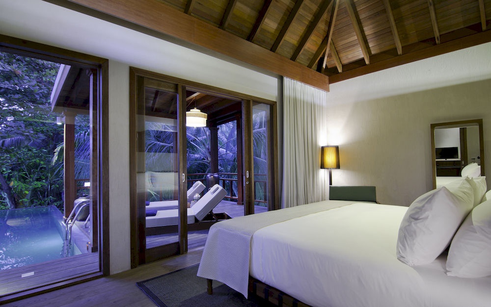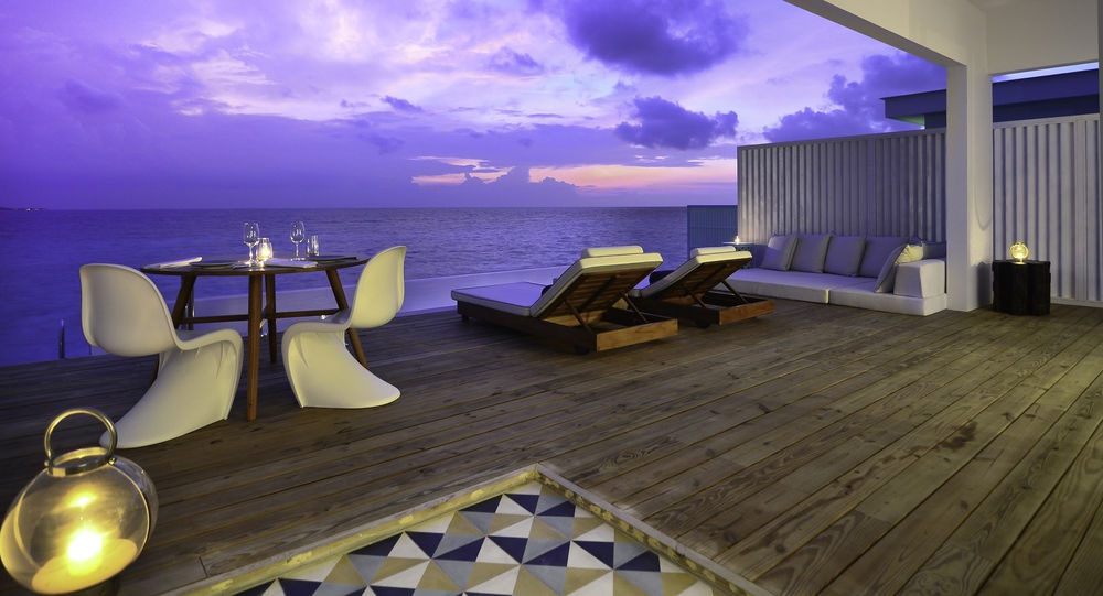 200 кв. м. Чудові надводні вілли, що схиляють до розслабленого відпочинку, складаються зі спальні з ліжком розміру king-size, вітальні, ванної кімнати відкритого плану з керамічною ванною, душем і раковиною, тропічного душу на просторій сонячній терасі з прісноводним басейном обладнаним сервіровальним підносом. Тераса має відпочинкову зону з винним баром, гамаком над океаном і комфортабельний спуск до океану. Розміщення: 2 особи.