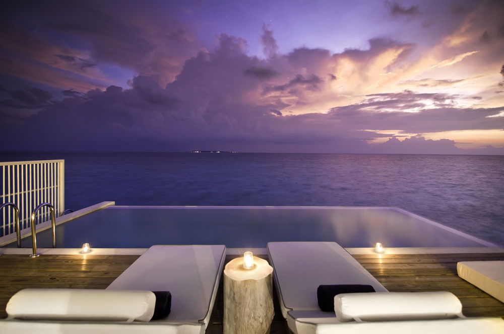 230 кв. м. Прекрасні надводні вілли з видами на океанські простори складаються з окремої спальні з ліжком розміру king-size, затишної вітальні з зоною відпочинку та робочим столом, ванної кімнати відкритого плану з керамічною ванною, душем та раковиною, тропічного душу на просторій сонячній терасі з басейном та зоною відпочинку. Номер має прямий доступ до океану. Розміщення: 2 особи.