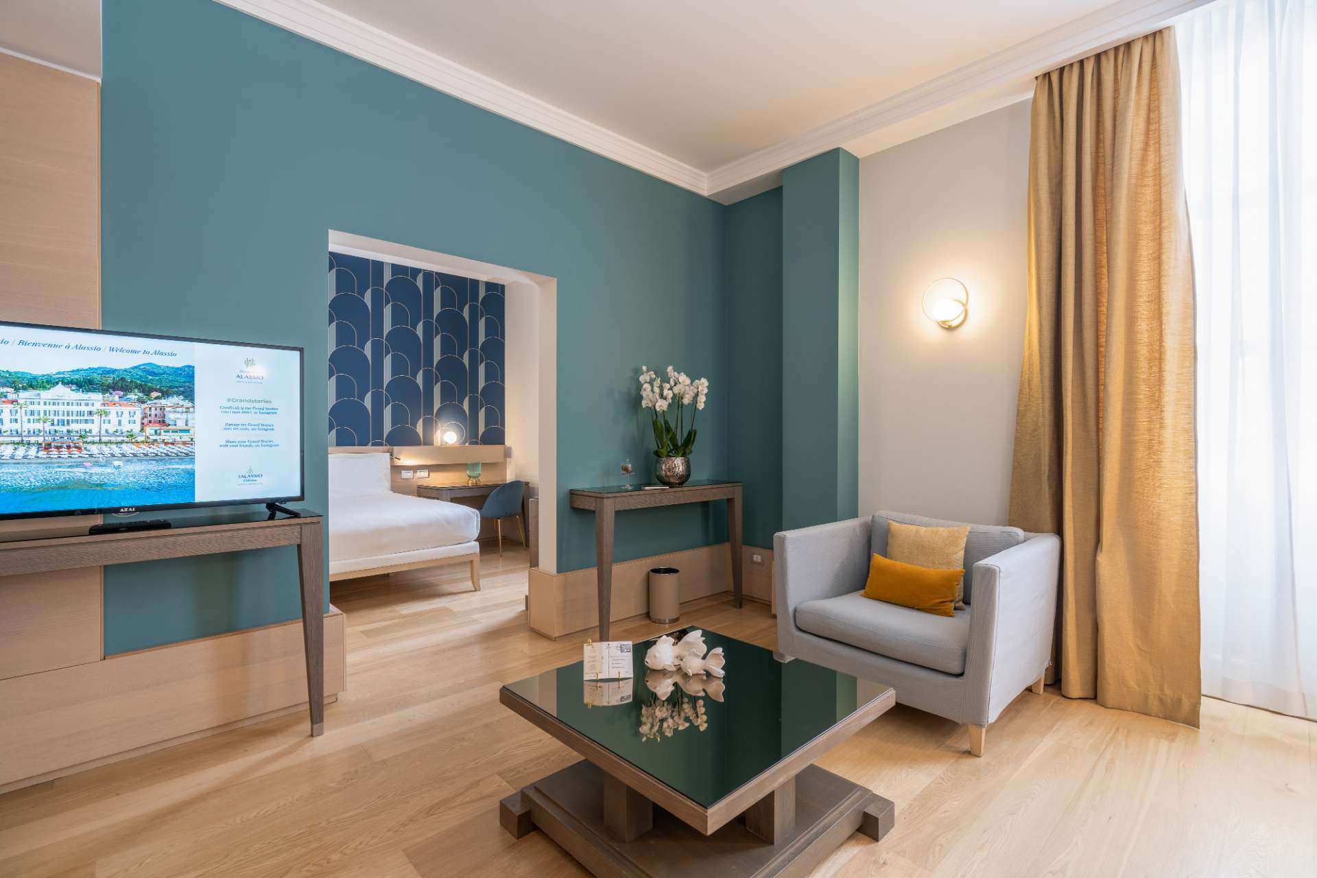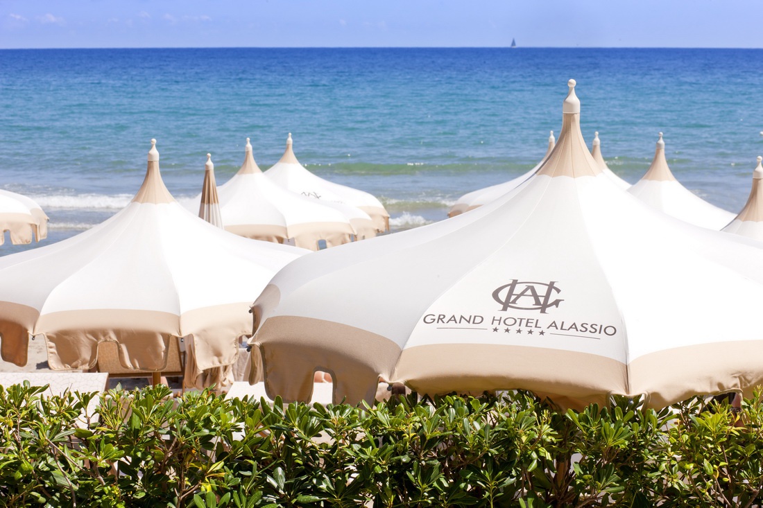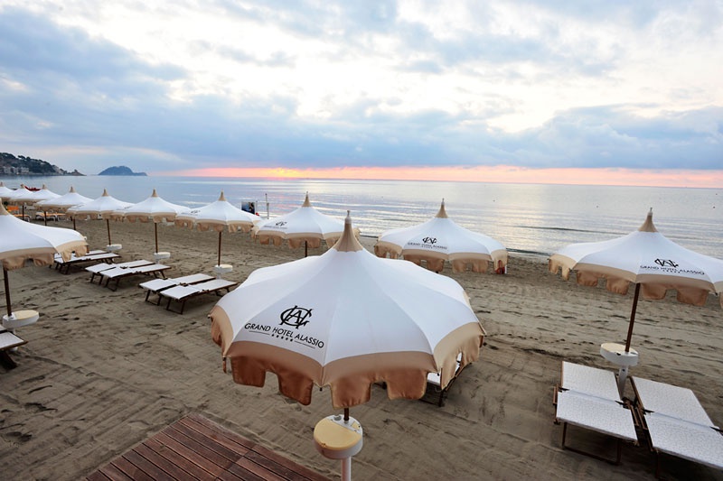 Готель Grand Hotel Alassio розташований на березі моря в особняку, який був збудований наприкінці XIX ст. Grand Hotel Alassio вперше почав приймати постояльців у 1897 році. У готелі зупинялися аристократи і навіть представники королівських сімей. На початку ХХІ ст. в готелі було проведено реновацію, і готель знову відкрив свої двері для мандрівників. Номери готелю виконані у сіро-блакитних відтінках та обставлені у сучасному стилі. Деякі кімнати мають балкони, звідки відкривається чудовий краєвид на затоку Алассіо та острів Галлінара.