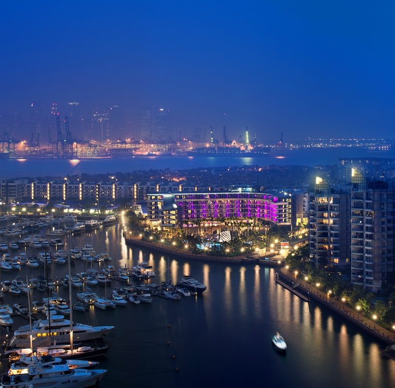 W Сінгапур - Сентоса Cove знаходиться на узбережжі Кам'яного острова, в 9 кілометрах від центральної бізнес-зони Сінгапуру та 28 км від аеропорту " Changui International".