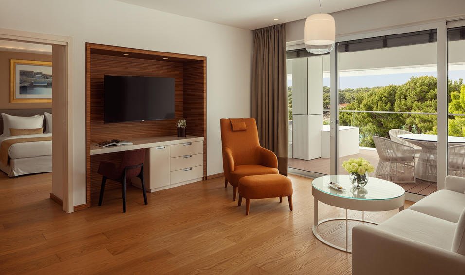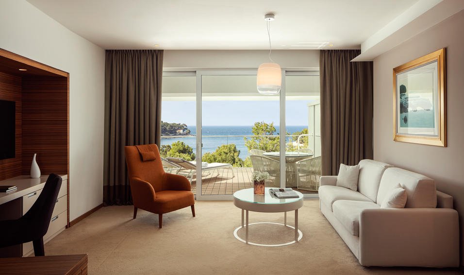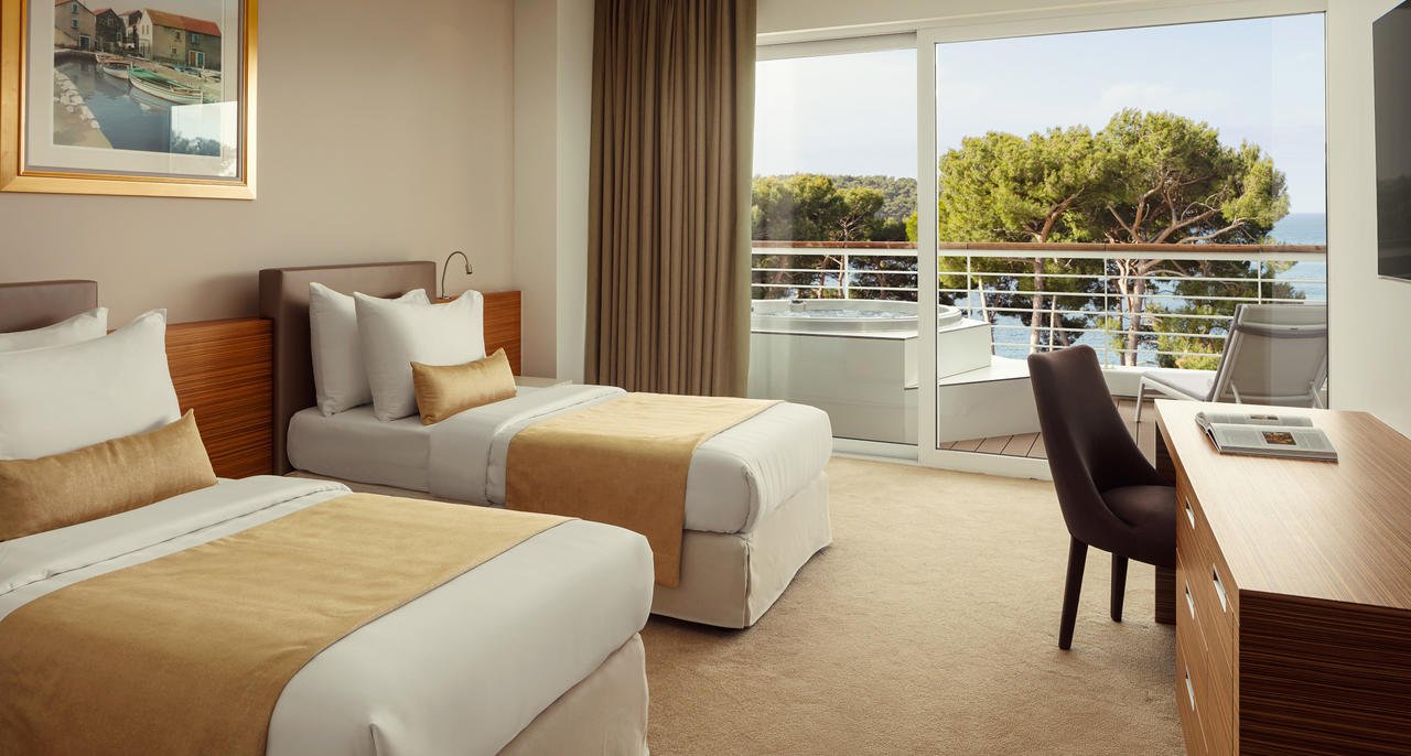 Hotel Bellevue - це п'ятизірковий курорт, розташований на березі затоки Чіката серед вікових сосен і з прямим доступом до Адріатичного моря. Зовні готель оформлений у мінімалістичному сучасному стилі з білими фасадами, а всередині розкривається просторим атріумом, наповненим природним світлом та спокійною атмосферою. Bellevue поєднує історію оздоровчого курорту (Чікат відомий як кліматичне лікувальне місце з кінця XIX століття) із сучасним рівнем сервісу та архітектурним дизайном, орієнтованим на комфорт, стиль та релакс. Готель пропонує висококласне меню гастрономів, преміальний СПА-центр і прямий доступ до приватної пляжної зони, що робить його привабливим як для спокійного сімейного відпочинку, так і для wellness-туризму. Bellevue також підходить для ділових заходів: на території є кілька конференц-залів з сучасною технікою та можливостями трансформації під банкет, семінар або презентацію.